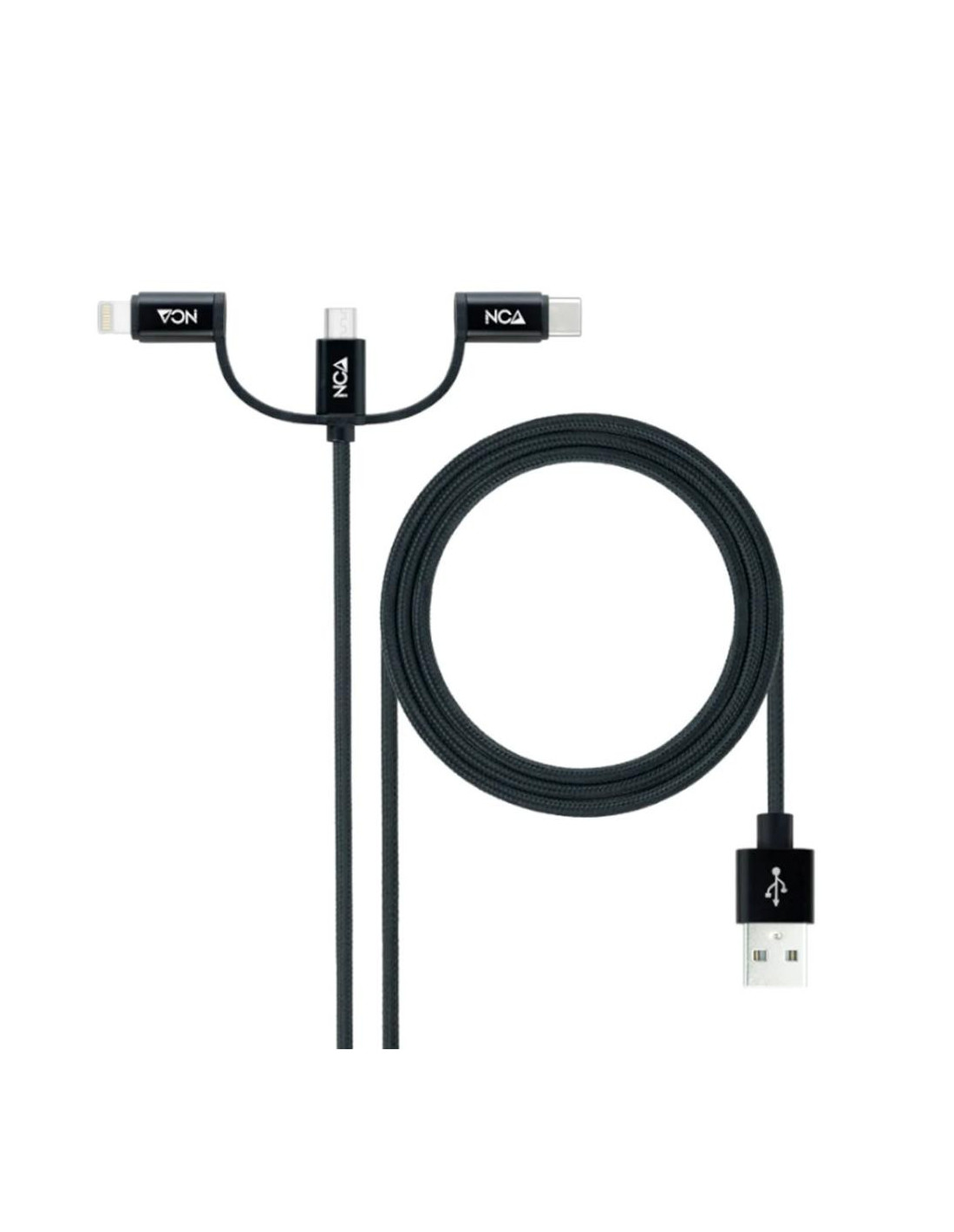 - 1 x Cable USB 3 en 1 Carga/Datos USB-A a USB-C/Micro USB/Lightning 1 m, Negro