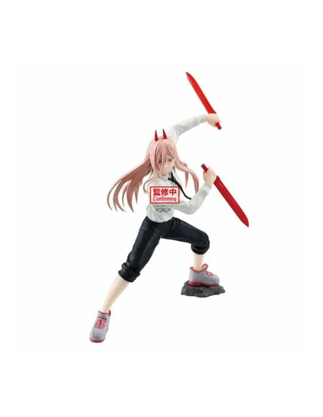 Power se presenta en una pose cargada de energía y expresividad, fiel al estilo visual del anime. Cada detalle, desde su expresión facial hasta los pliegues de su ropa, está cuidadosamente modelado y pintado para reflejar su carácter explosivo.