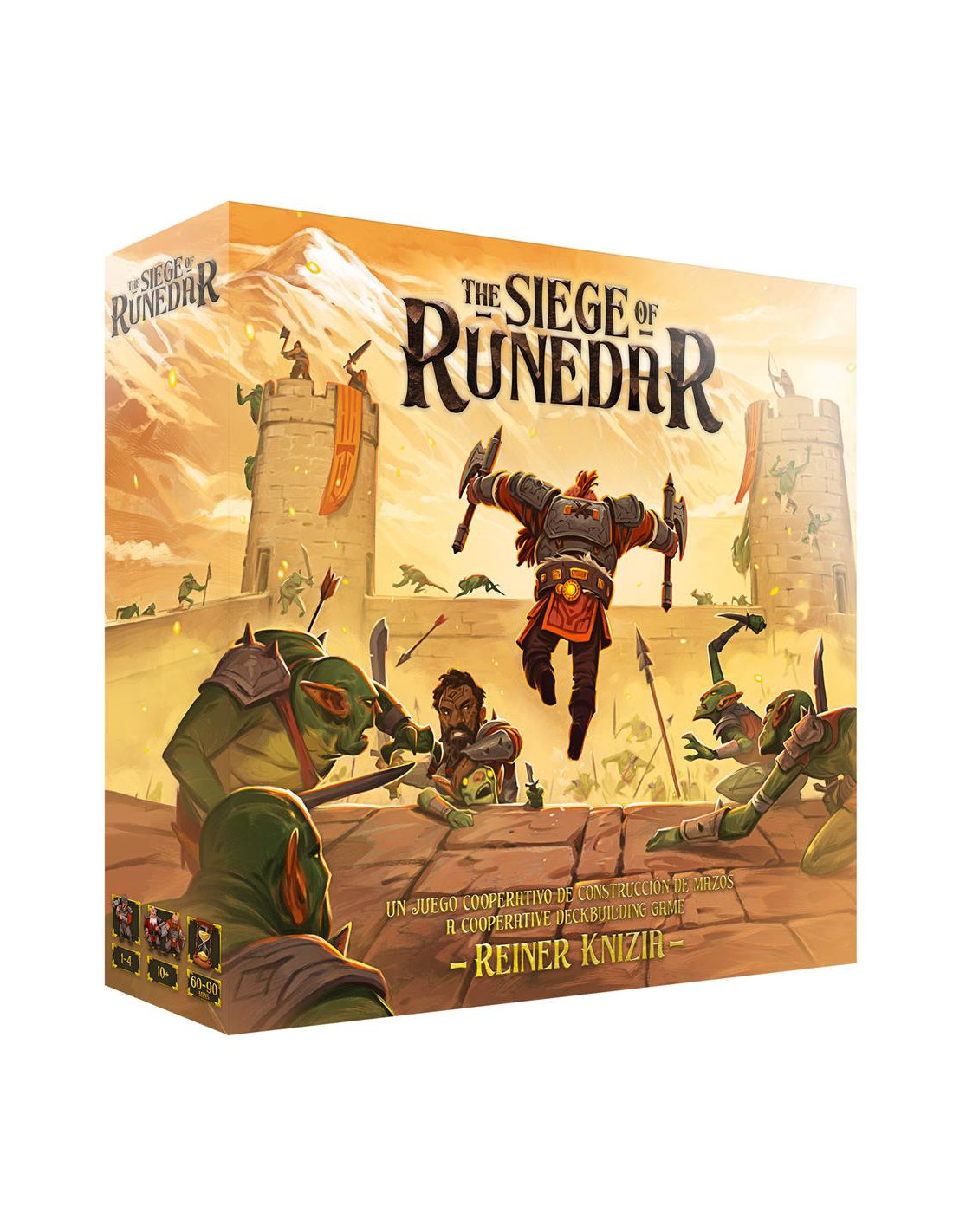 The Siege of Runedar es un desafiante juego de mesa cooperativo diseñado para 1 a 4 jugadores, ideal para quienes disfrutan de la estrategia, la acción y las aventuras fantásticas. Ambientado en una fortaleza enana sitiada por hordas de enemigos, este juego pone a prueba la capacidad del grupo para coordinarse, defender su territorio y encontrar una ruta de escape mientras protegen un tesoro recién descubierto. Recomendado a partir de los 10 años, ofrece partidas intensas de entre 60 y 90 minutos.
