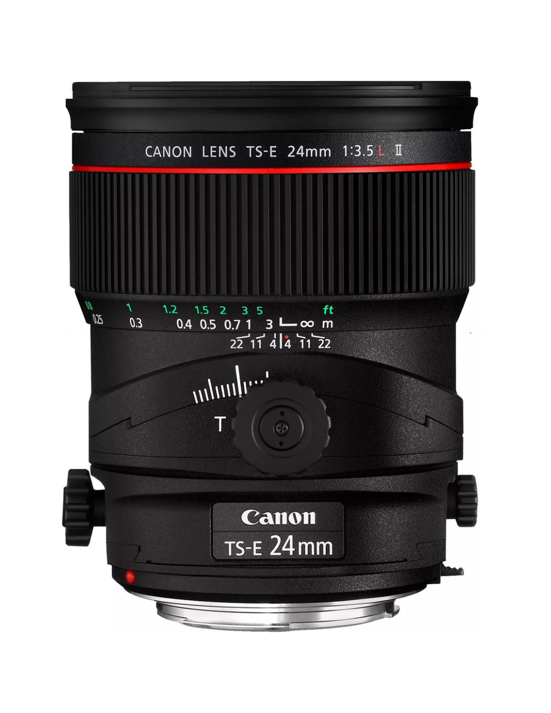 El TS-E 24mm f/3.5L II es un objetivo con sistema de inclinación y desplazamiento de la serie L profesional, idóneo para la fotografía de arquitectura e interiores. Con una inclinación de hasta 8,5 para el