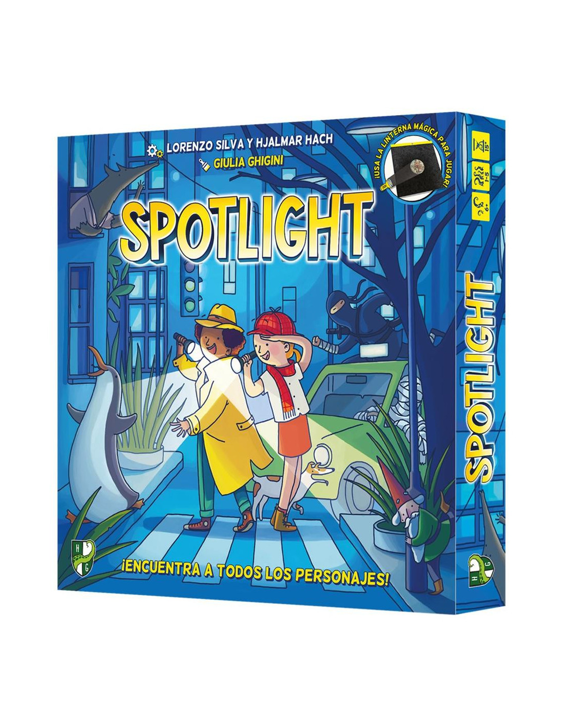 En Spotlight, los jugadores unen fuerzas para localizar a los estrafalarios personajes que se esconden en los tableros. Armados con sus linternas mágicas, deberán explorar, comunicarse y organizarse para encontrar al mayor número posible antes de que el tiempo se agote. La cooperación es clave para que nadie llegue tarde a casa.