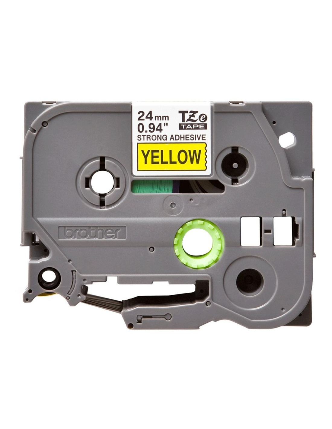 El **contraste de texto negro sobre fondo amarillo** asegura una lectura fácil y rápida, incluso a distancia o con poca luz. Además, su formato estándar de **24 mm de ancho** la hace compatible con una amplia gama de rotuladoras Brother que aceptan cintas TZe.