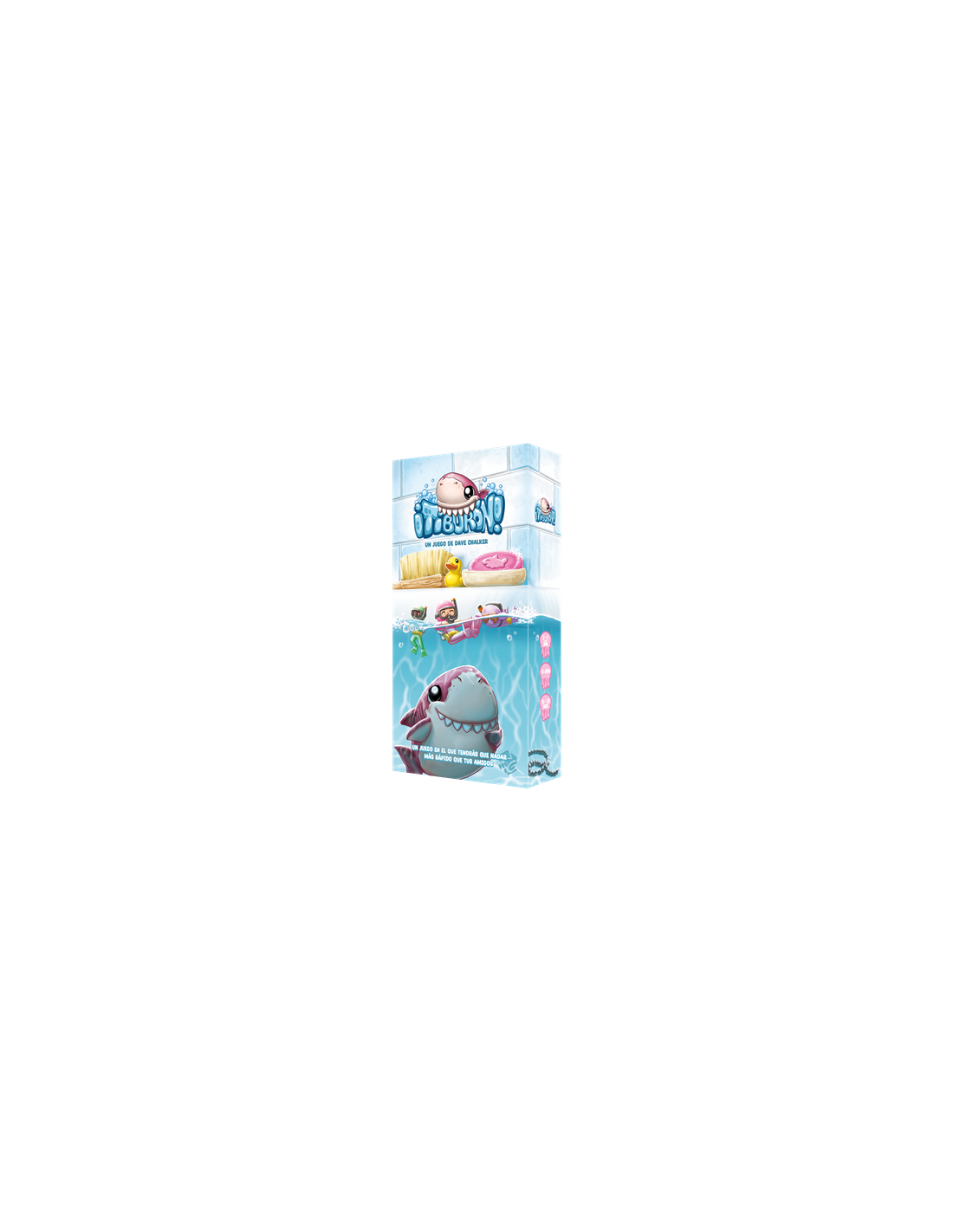 El objetivo es simple pero desafiante: **no quedar en último lugar**. Cada jugador controla una figura de plástico que intenta nadar lo más rápido posible para evitar al tiburón que acecha por la tina. A medida que avanza la partida, deberás gestionar tus cartas, anticiparte a los movimientos de los demás y evitar ser el siguiente en ser "mordido".