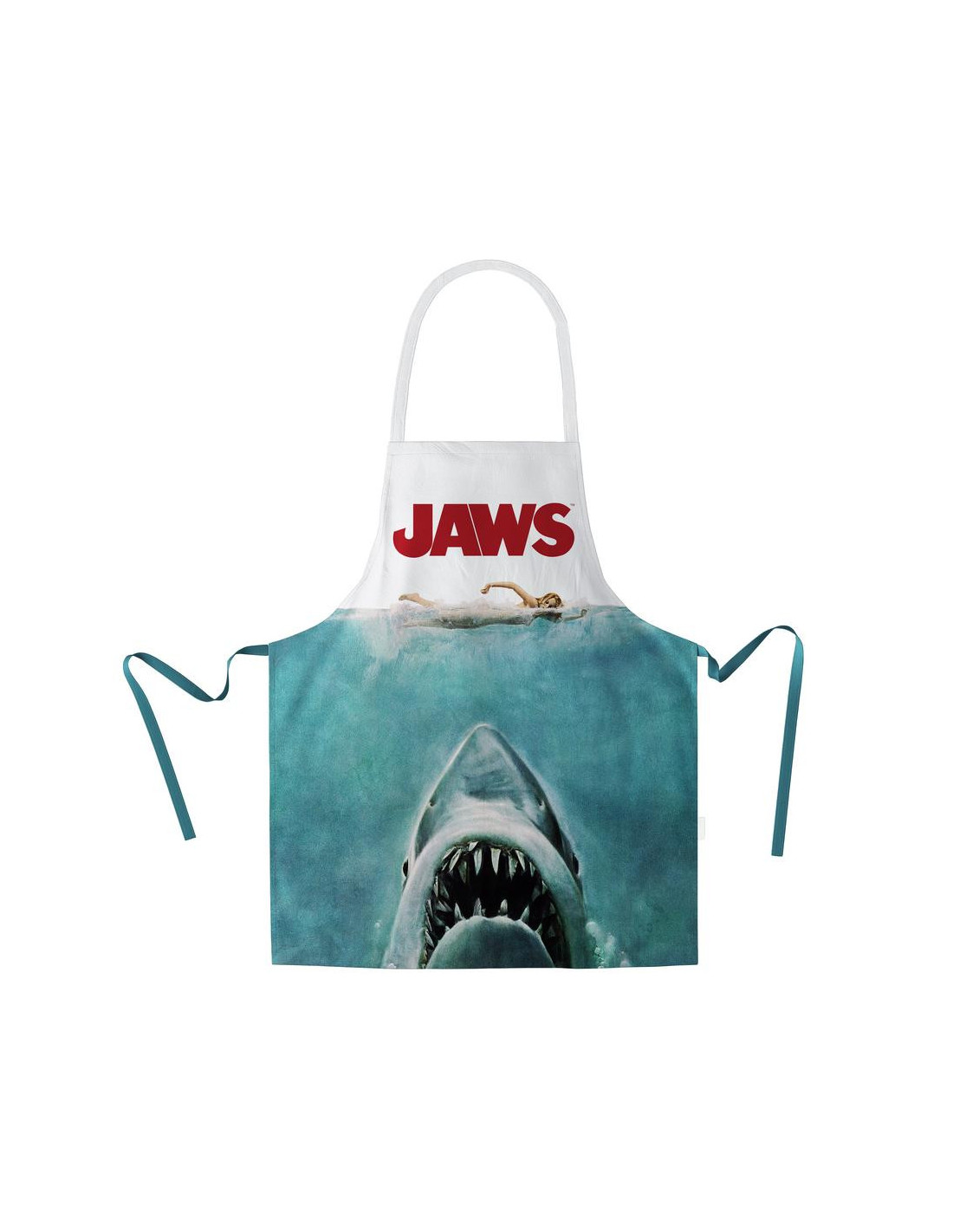El frontal del delantal muestra la clásica escena del tiburón blanco emergiendo desde el fondo del océano, una imagen que ha marcado la historia del cine. Este diseño convierte un accesorio cotidiano en una pieza llamativa, capaz de generar conversación en cualquier reunión.