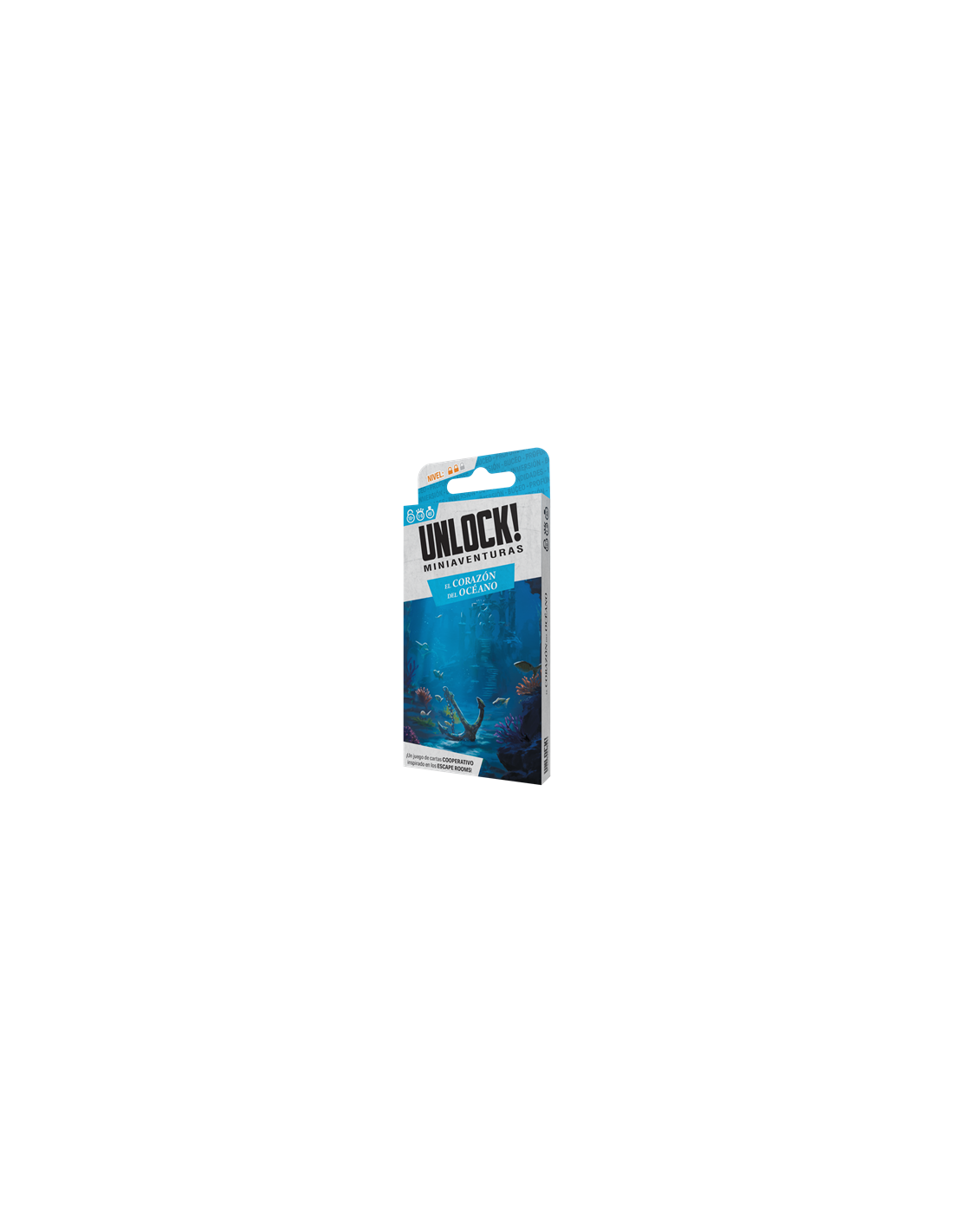 Unlock! Mini: El Corazón del Océano es una **miniaventura de escape room en formato juego de cartas**, ideal para quienes disfrutan de los desafíos mentales y las experiencias cooperativas. Esta entrega de la saga Unlock! está pensada para partidas más cortas, manteniendo toda la tensión y dinamismo de los juegos de escape tradicionales. Perfecto para **jugadores a partir de 10 años**, tanto en solitario como en grupo.