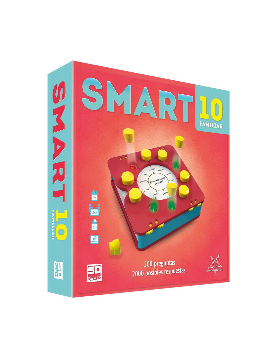 SMART10 Familiar es la versión ideal para disfrutar en familia del exitoso juego de preguntas y respuestas que ha conquistado a jugadores de todas las edades. Con un formato compacto y dinámico, este juego fomenta el pensamiento rápido, la estrategia y el aprendizaje compartido. Su diseño renovado mantiene el mismo contenido que lo ha hecho un éxito en todo el mundo.