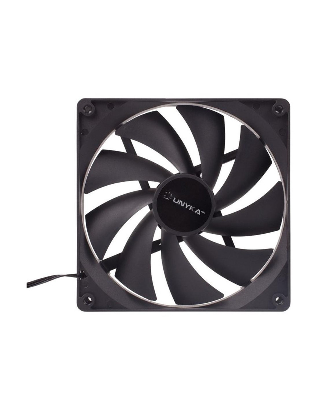 UNYKAch 140 mm. Tipo: Ventilador, Diámetro de ventilador: 14 cm, Velocidad de rotación (máx.): 1000 RPM, Nivel de ruido (alta velocidad): 19 dB. Voltaje: 12 V. Ancho: 140 mm, Profundidad: 25 mm, Altura: 140 mm. Color del