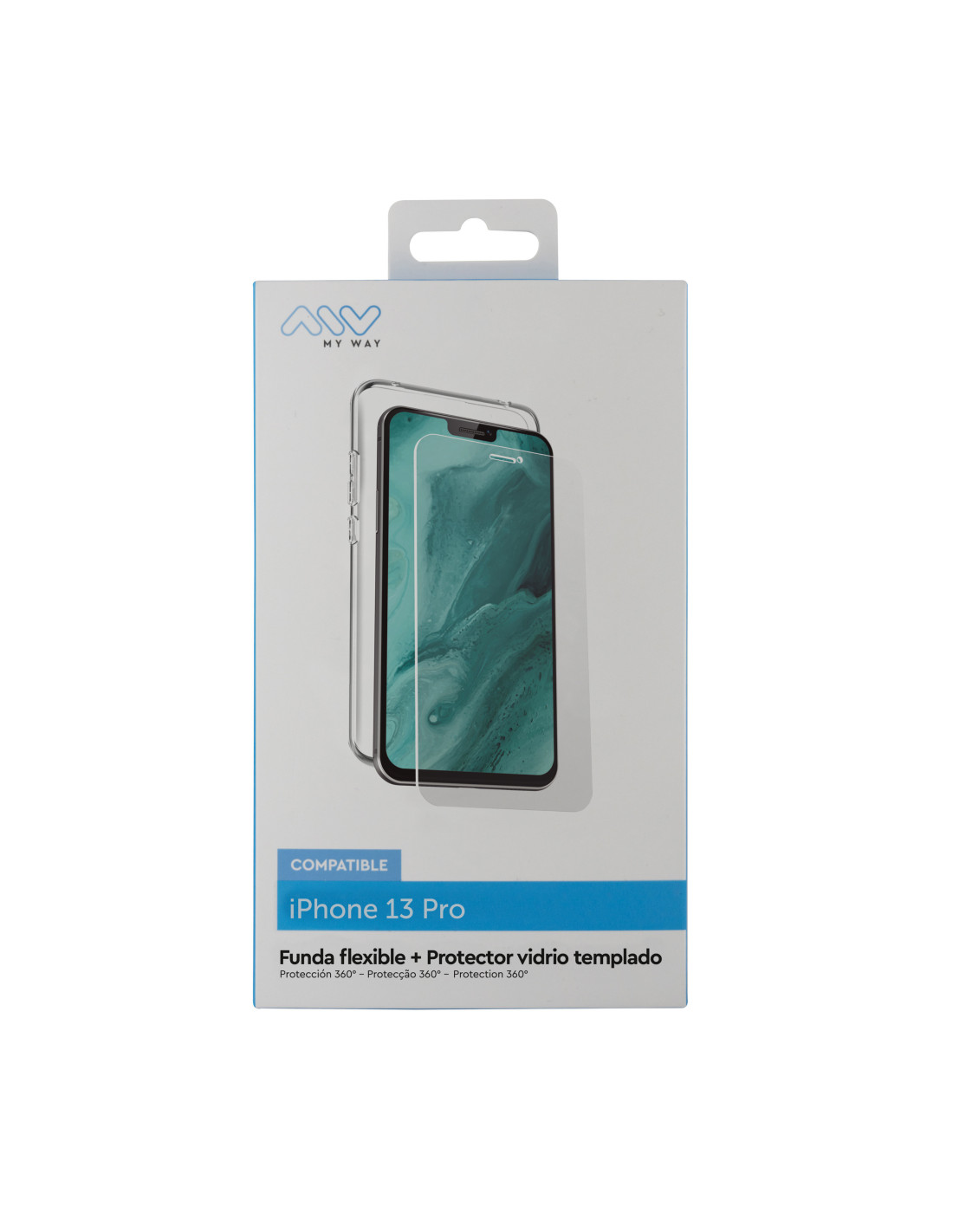 Carcasa myway para apple iphone 13 pro transparente + protector pantalla cristal templado