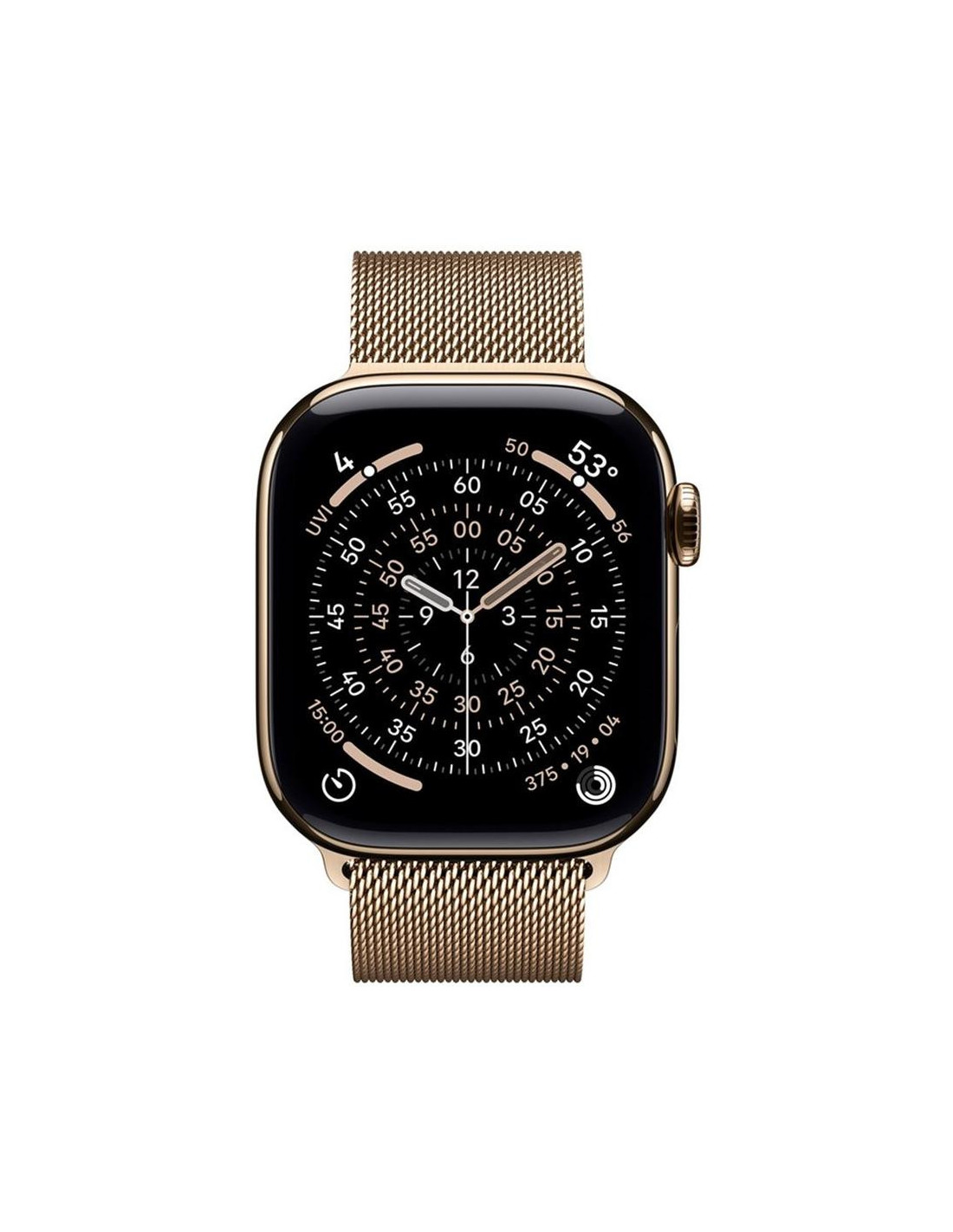 El Apple Watch Series 11 combina diseño elegante, materiales de alta calidad y la última tecnología en salud, deporte y conectividad. Diseñado para quienes buscan un reloj inteligente completo, este modelo ofrece monitorización avanzada de la actividad física, funciones de seguridad, conectividad 5G y compatibilidad con Apple Pay y Siri. Su caja de titanio reciclado en color oro y la correa Milanese Loop de acero inoxidable hacen de este smartwatch una pieza tan robusta como sofisticada.