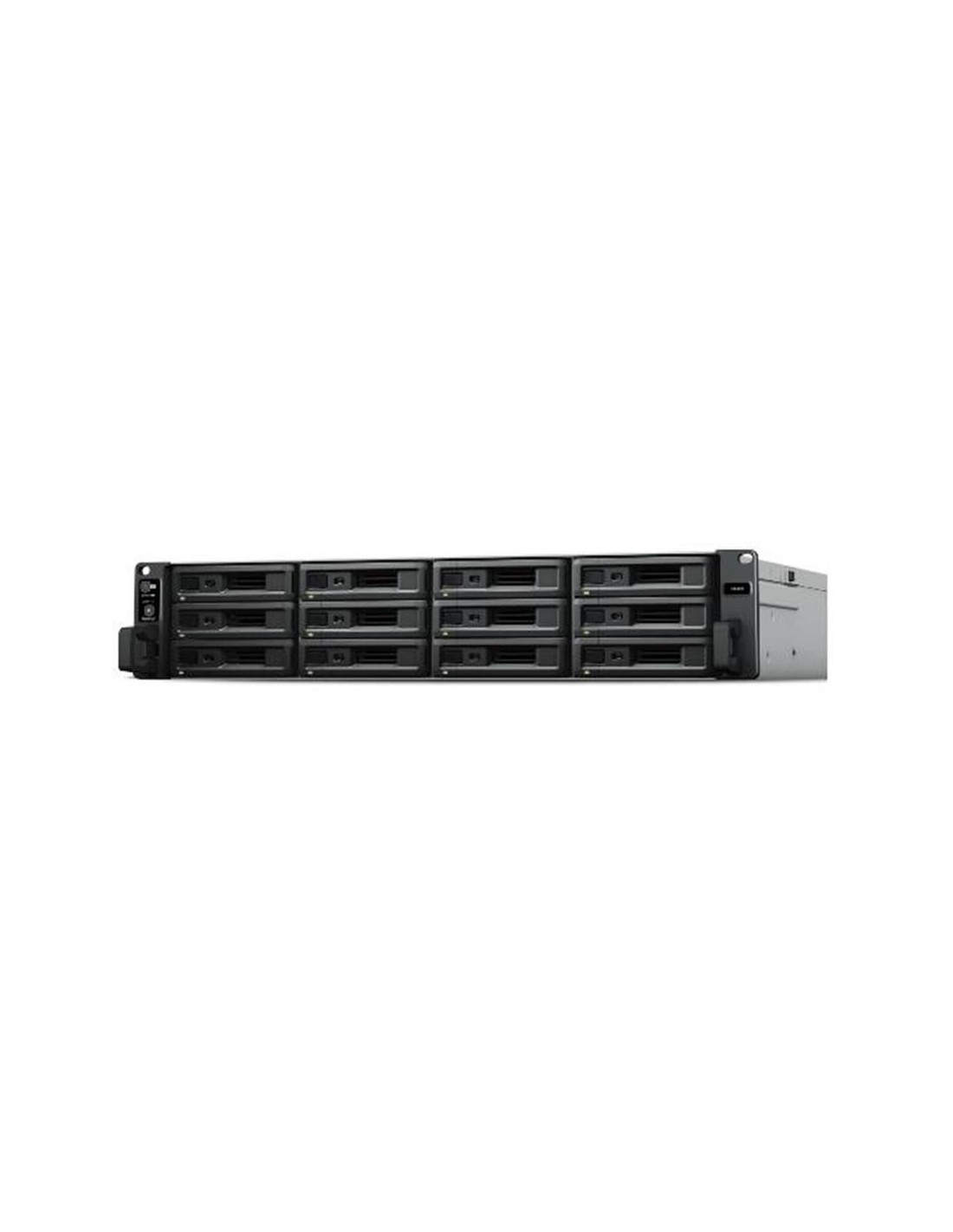 Construido para racks de servidores, este NAS presenta un chasis negro robusto y eficiente en espacio. Ideal para centros de datos o salas técnicas con necesidad de integración estándar.