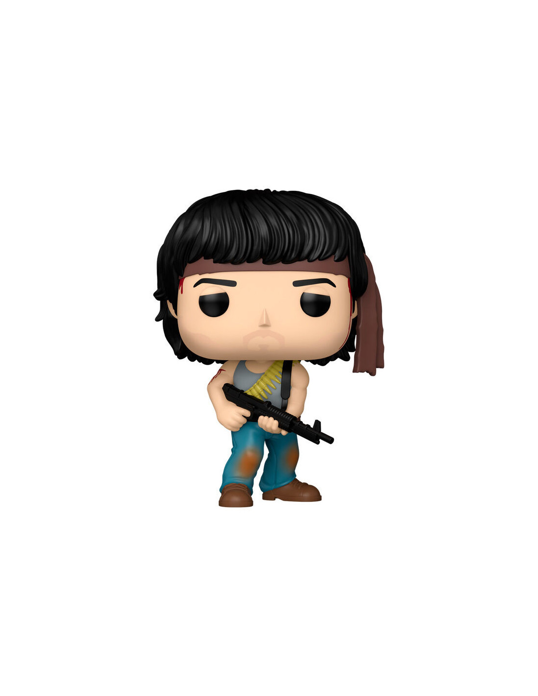 Este Funko Pop! reproduce a John Rambo con su característico look de combate: cinta en la cabeza, expresión decidida y actitud lista para la acción. Ideal para exponer junto a otras figuras de películas clásicas.