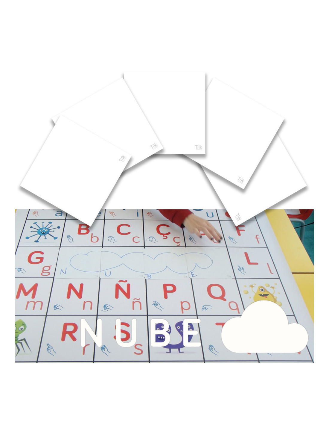 El carácter laminado del material nos permite reutilizar las tarjetas y así plantear diferentes propuestas de juego. Pueden colocarse sobre cualquiera de los tapetes, planteando nuevos retos o