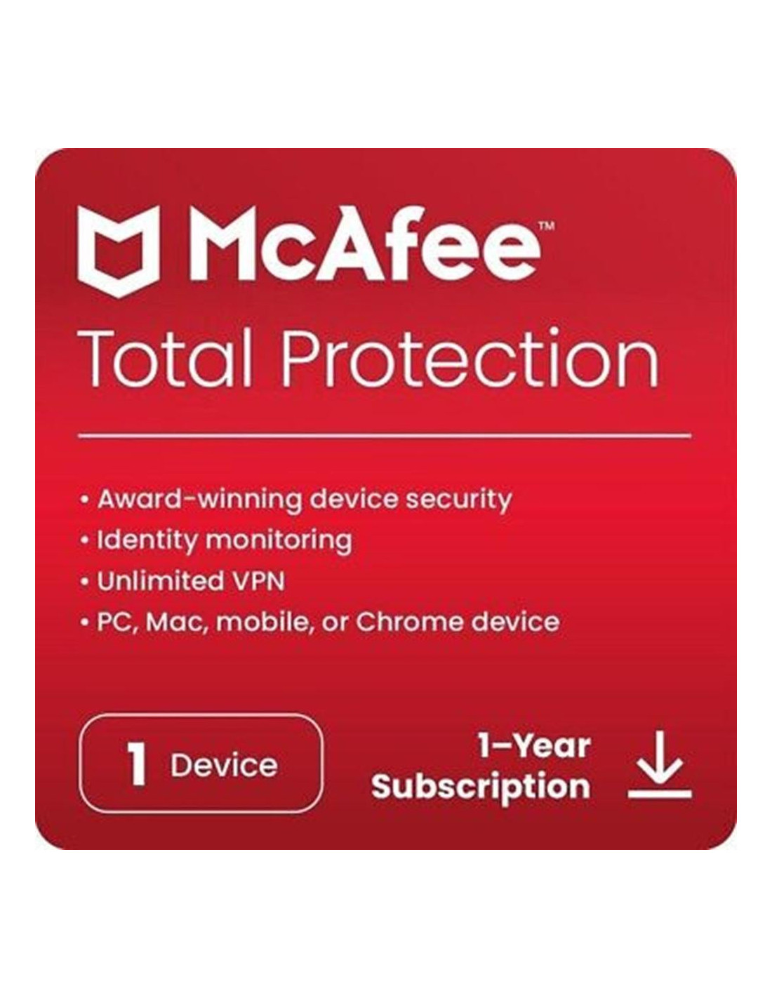 Antivirus mcafee total proteccion 1 dispositivo 1 año esd (descarga directa)