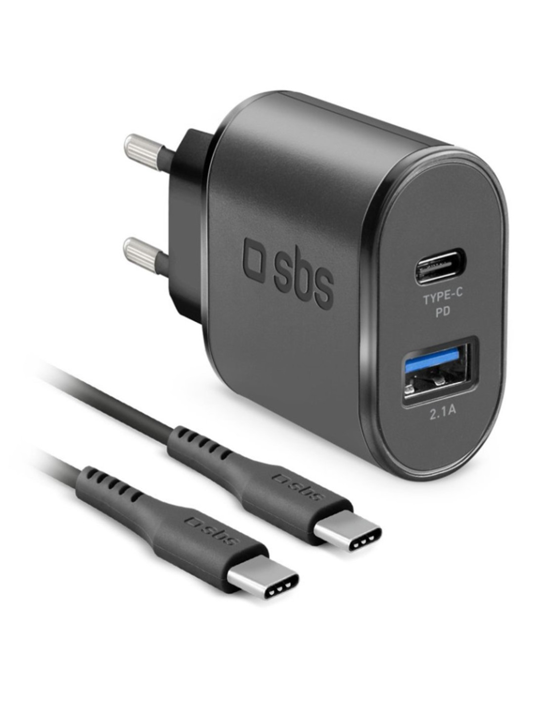 Kit cargador pared sbs 1 x usb 2.1 1 x usb tipo c 12 - 24v carga rapida + cable usb tipo c 1.5m