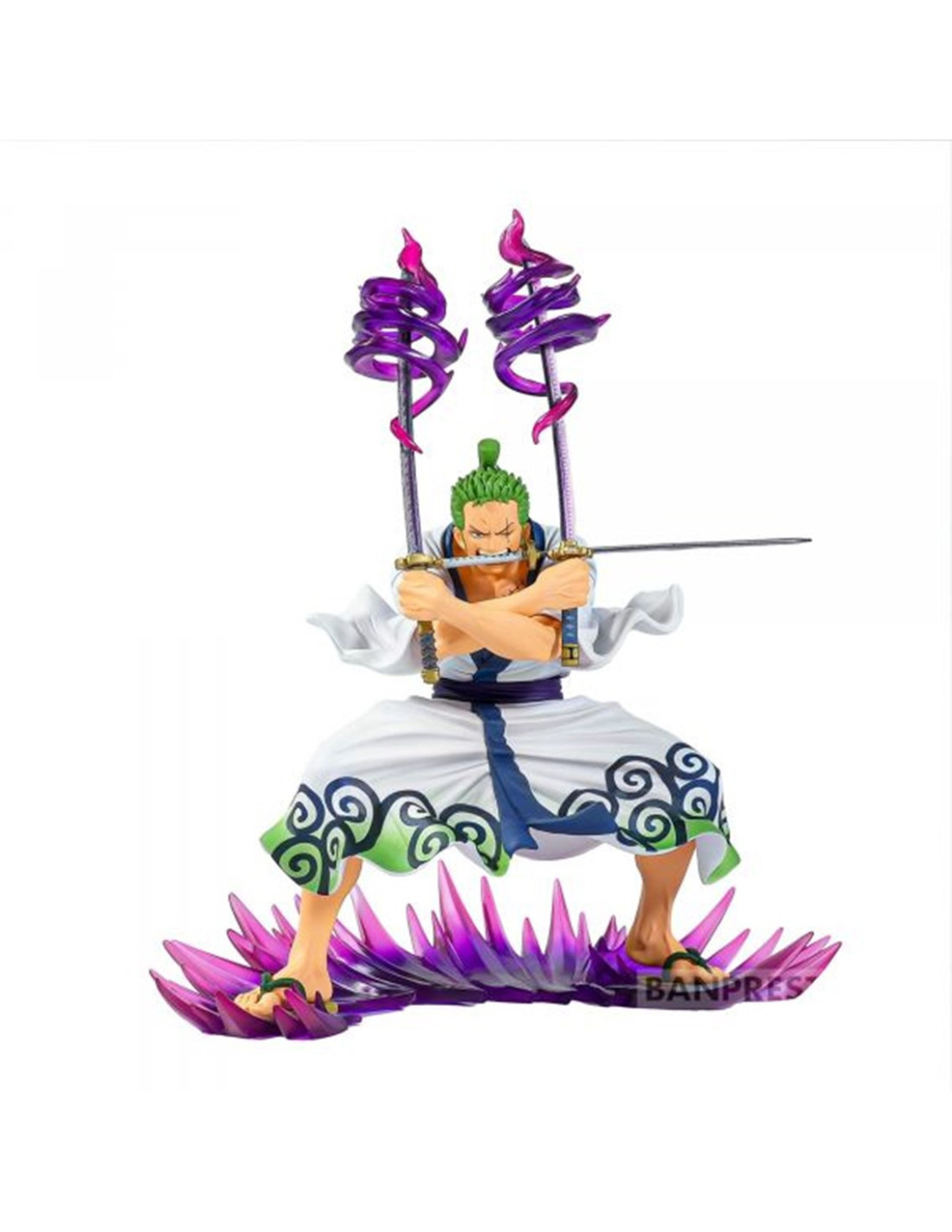 Banpresto presenta la figura de Zoro Juro, personaje de la serie de anime One Piece Dxf Special. Se trata de una figura de PVC que mide 13 cm e incluye una base de exposición.
