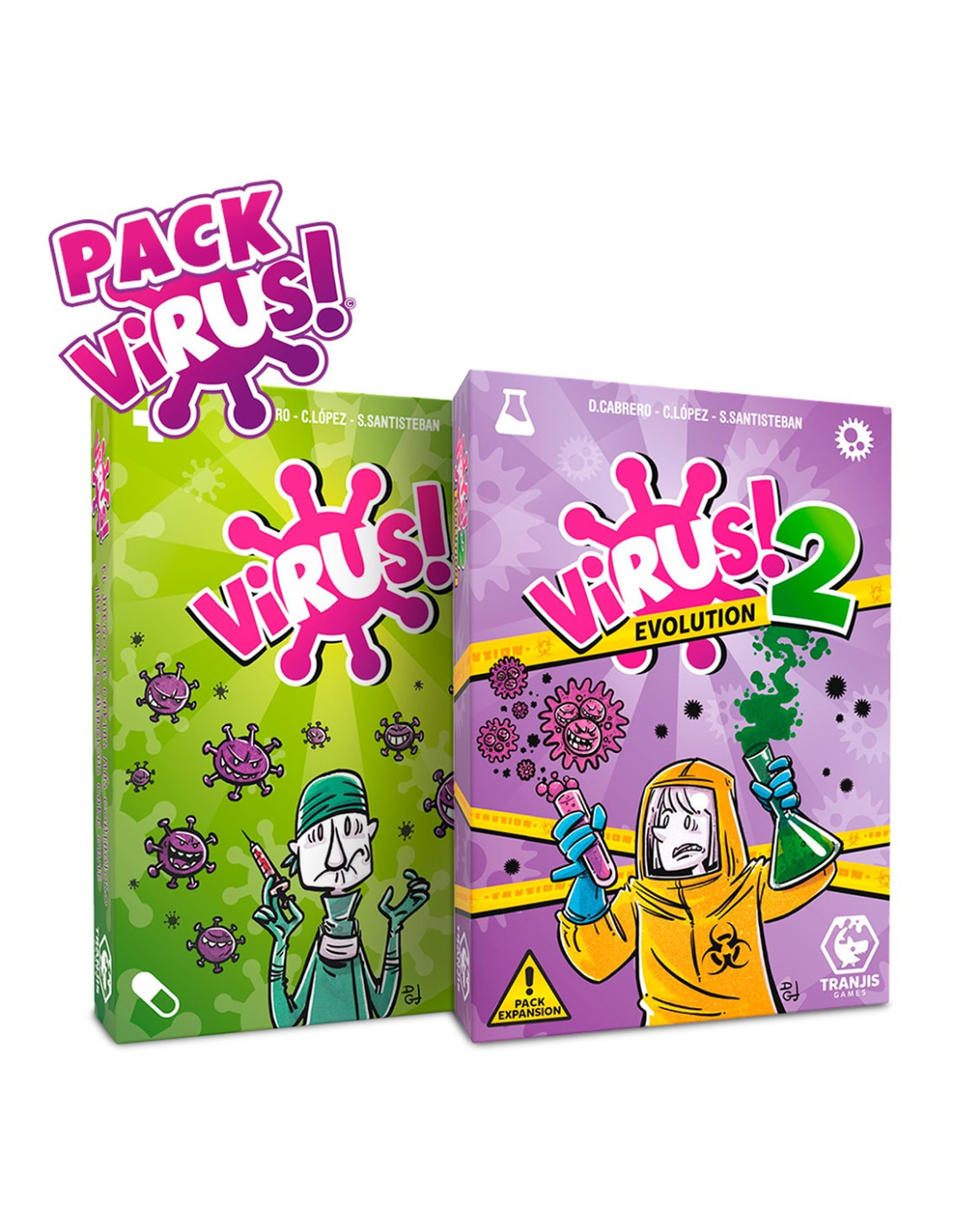 El Pack Virus! + Virus! 2 incluye el exitoso juego de mesa Virus! y su expansión Virus! 2, ofreciendo una experiencia de juego más completa, dinámica y llena de giros inesperados. Con licencia oficial de Tranjis Games, este pack es ideal para quienes buscan partidas rápidas, competitivas y cargadas de estrategia y humor. Perfecto para jugar en familia o con amigos, pondrá a prueba tu capacidad para sabotear, proteger y completar tu cuerpo antes que nadie.