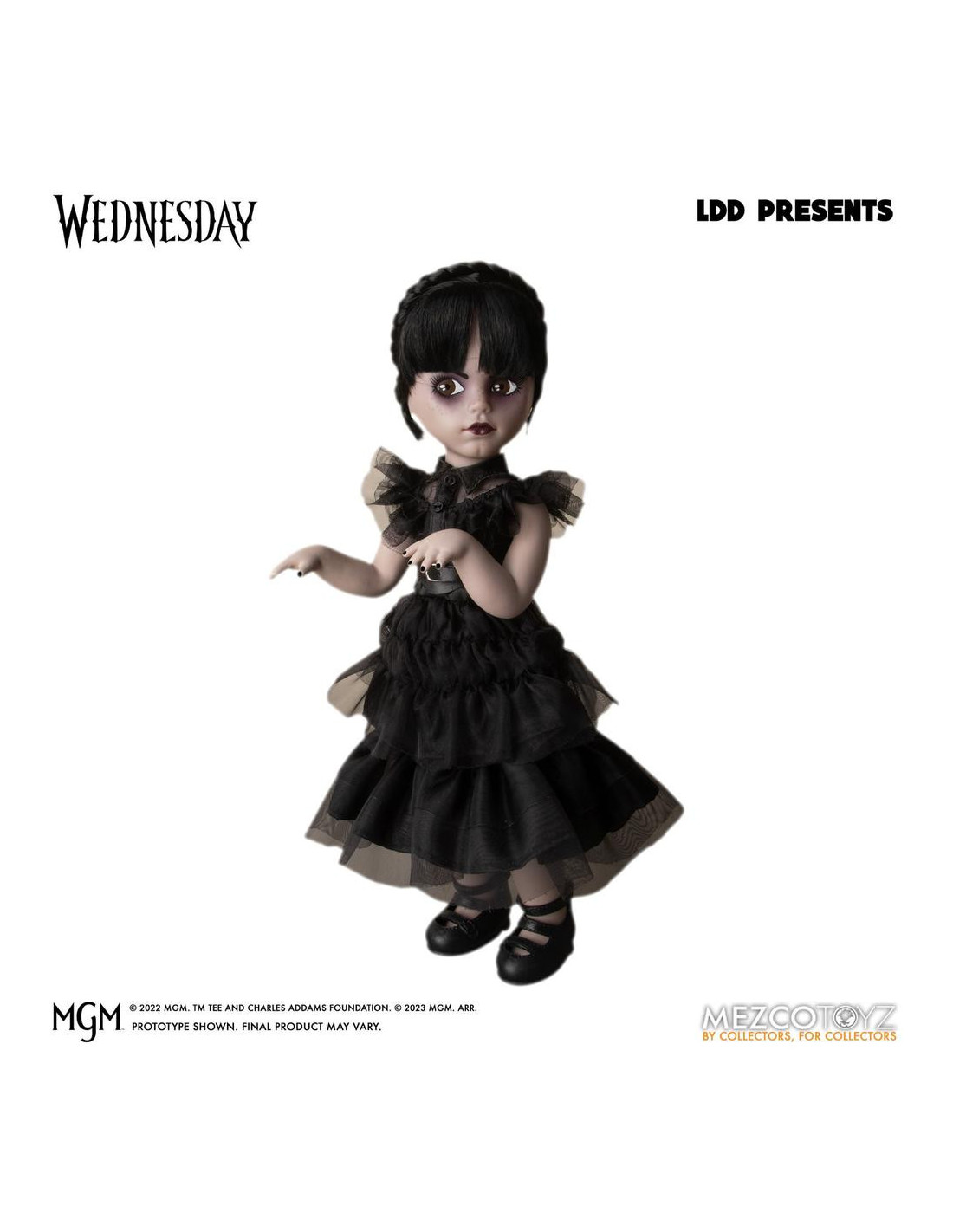 baile de la escena más viral de la serie. Aparece vestida con su icónico vestido negro de volantes que usa en el baile anual de Rave'N de la Academia Nevermore. Cuenta con 5 puntos de articulación y