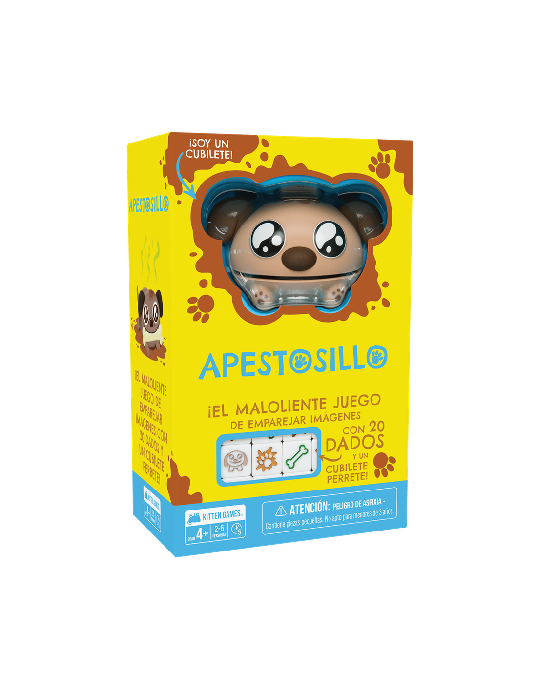 La mecánica de Apestosillo es sencilla y divertida: los jugadores lanzan dados desde un original cubilete en forma de perro y deben emparejarlos con las cartas disponibles. Cada tirada ofrece decisiones estratégicas que pueden cambiar el rumbo del juego.