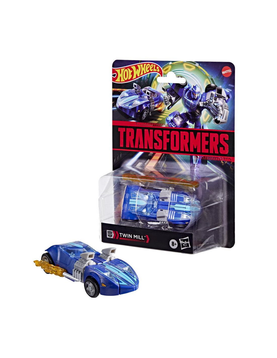 El **Hot Wheels® x Transformers Twin Mill?** es el resultado de una colaboración única que fusiona el icónico diseño de los coches Hot Wheels con la acción transformable del universo Transformers. Esta figura coleccionable de 12,5 cm está diseñada tanto para niños a partir de 8 años como para coleccionistas que buscan una pieza exclusiva, articulada y transformable. Combina la potencia visual del coche Twin Mill? con la dinámica transformación en robot, manteniendo la esencia de ambas franquicias legendarias.