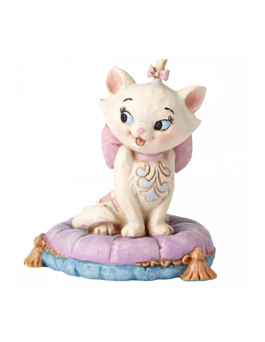 La **mini figura de Marie**, inspirada en el clásico de Disney *Los Aristogatos*, forma parte de la exclusiva serie **Disney Traditions** de Enesco. Diseñada por el reconocido artista Jim Shore, esta colección aúna el estilo del **arte folk americano** con la estética clásica de los personajes Disney. Una pieza ideal para fans y coleccionistas que valoran el diseño, la calidad y la atención al detalle.