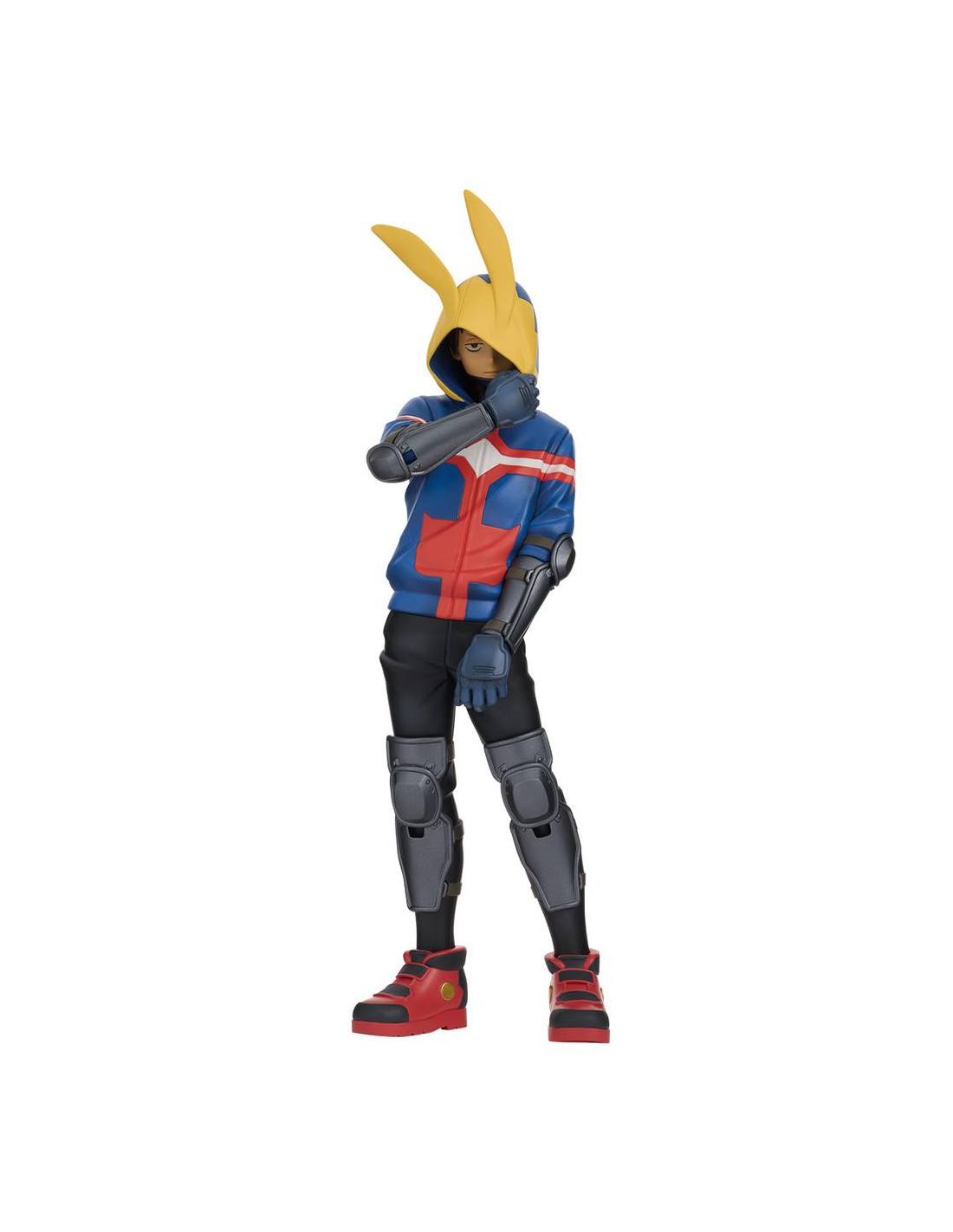 Esta figura presenta a Koichi en una postura relajada pero atenta, reflejando perfectamente su rol como vigilante urbano. Su vestimenta casual, la capucha con efecto dinámico y el uso de su Quirk "Deslizamiento" están representados con un excelente nivel de detalle, gracias a la calidad de modelado y pintado de la gama Masterlise.