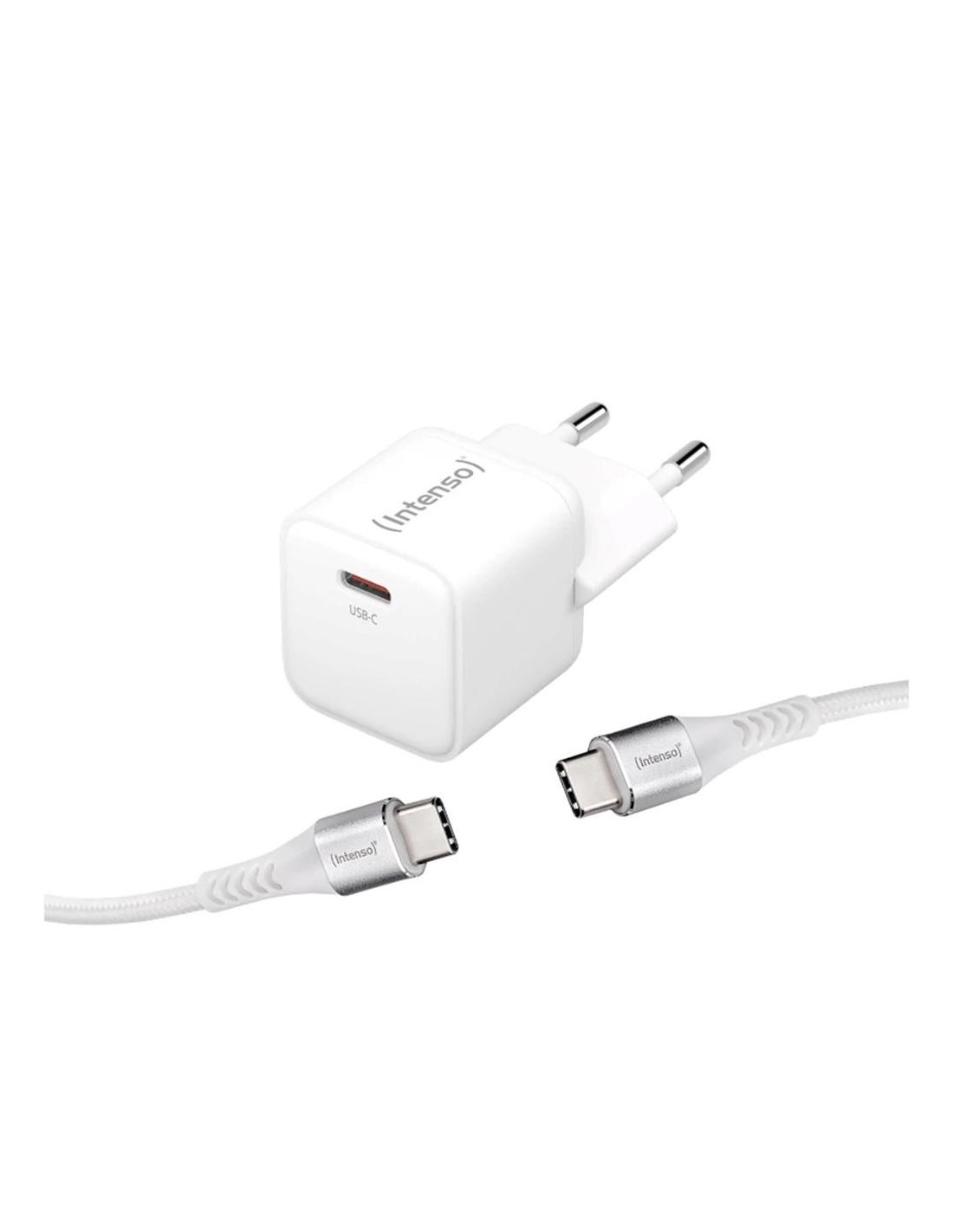 Cargador pared intenso gan w30c usb tipo c blanco + cable usb tipo c