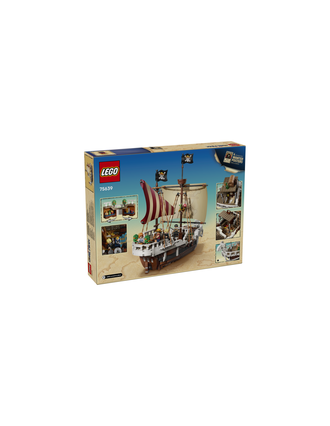 Este barco pirata recrea fielmente el Going Merry, con mástiles, velas, timón y el icónico mascarón de proa con forma de carnero. Bajo cubierta, el modelo incluye varios espacios funcionales que amplían las posibilidades de juego y exploración.