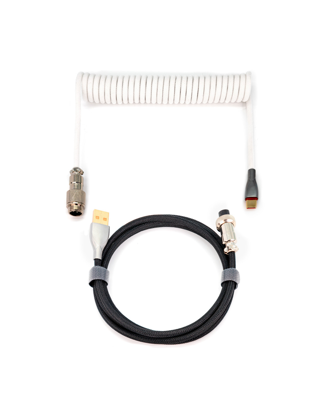 El accesorio definitivo para acompañar tu teclado mecánico con conector tipo C. Kioru es el cable de aviador trenzado con forma de espiral perfecto para dotar a tu escritorio de un aspecto profesional y minimalista.
