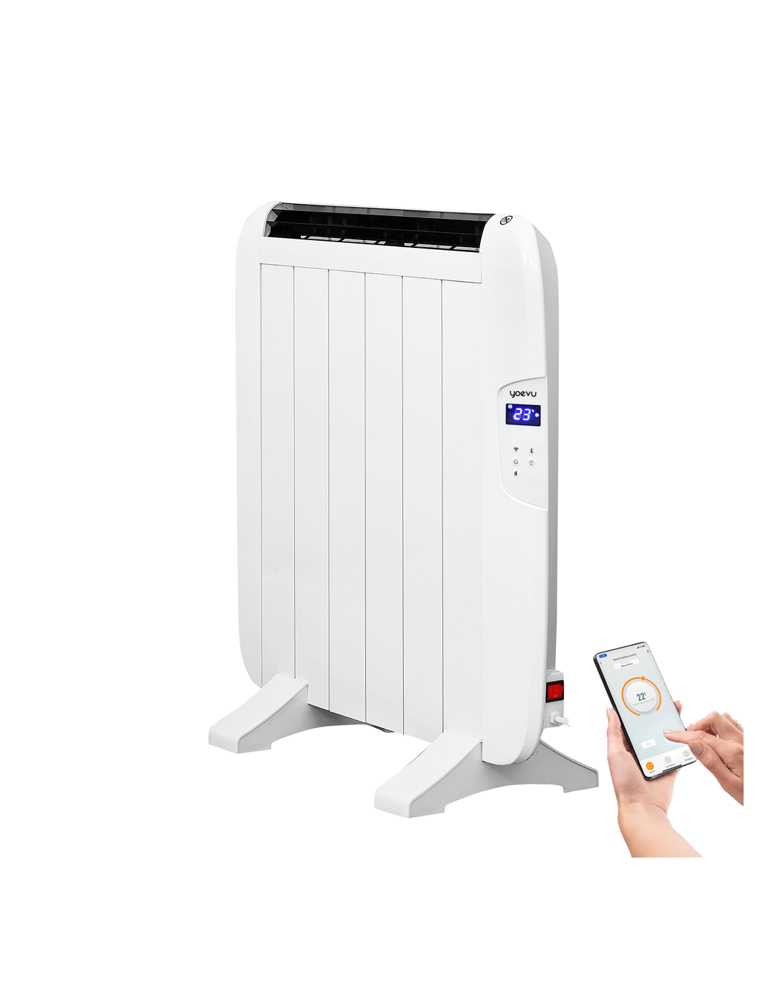 Yoevu - radiador eléctrico bajo consumo - 4 elementos - 900 w - temporizador - programable - mando a distancia - pantalla lcd - app control wifi - compatible con alexa - apto pared o pie - aluminio - blanco