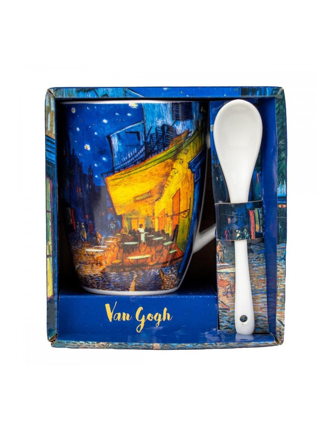 La taza con cuchara Enesco inspirada en "Terraza de café por la noche" de Van Gogh es una opción ideal para los amantes del arte y el diseño. Este set combina funcionalidad y estética, convirtiendo un objeto cotidiano en una pieza decorativa única, perfecta para disfrutar de tus bebidas calientes con un toque artístico.