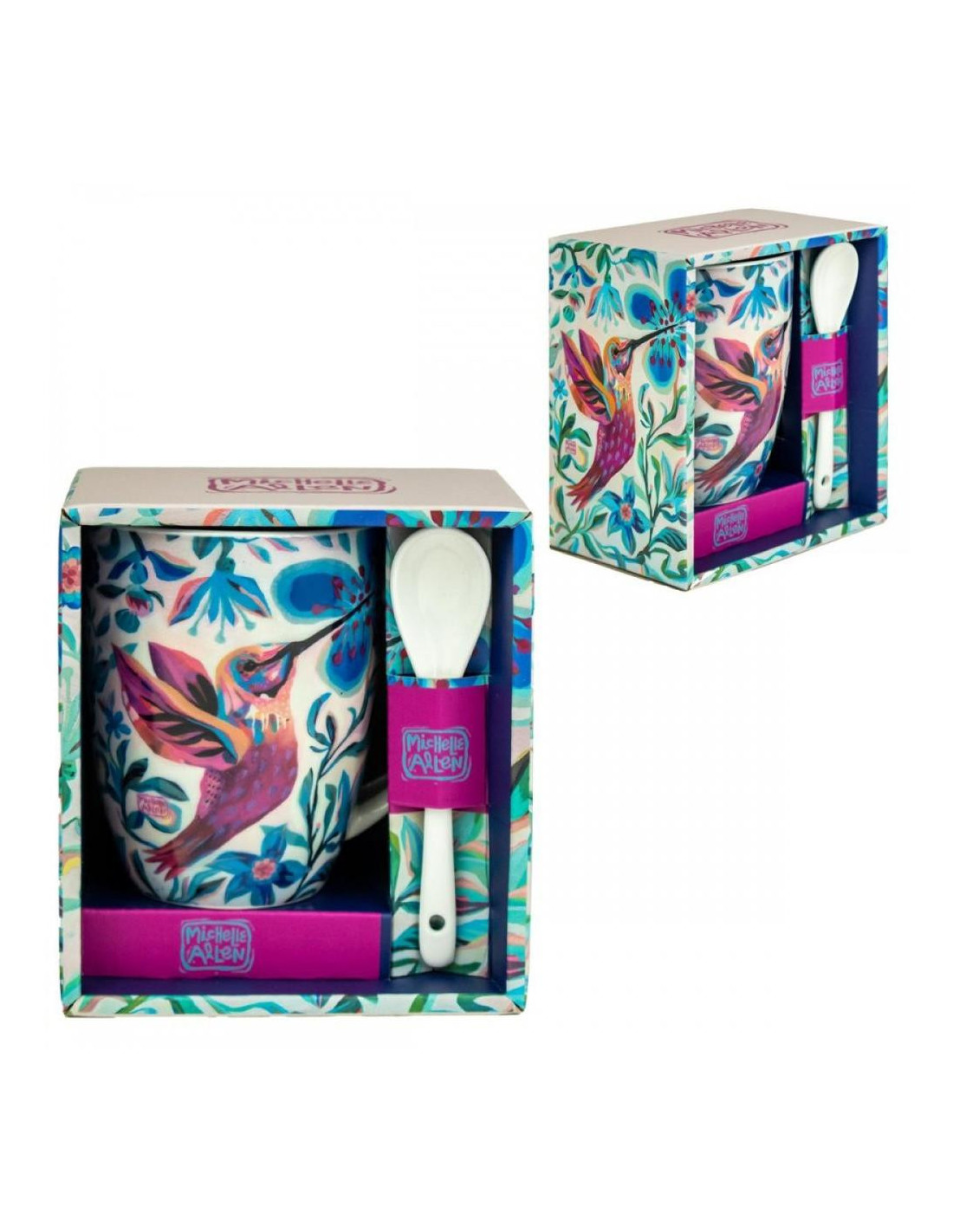 La taza con cuchara Enesco Colibrí es una opción ideal para quienes buscan un producto funcional con un diseño decorativo atractivo. Inspirada en motivos naturales, destaca por su ilustración de colibrí y colores vivos, convirtiéndola en una pieza perfecta tanto para uso diario como para regalo.