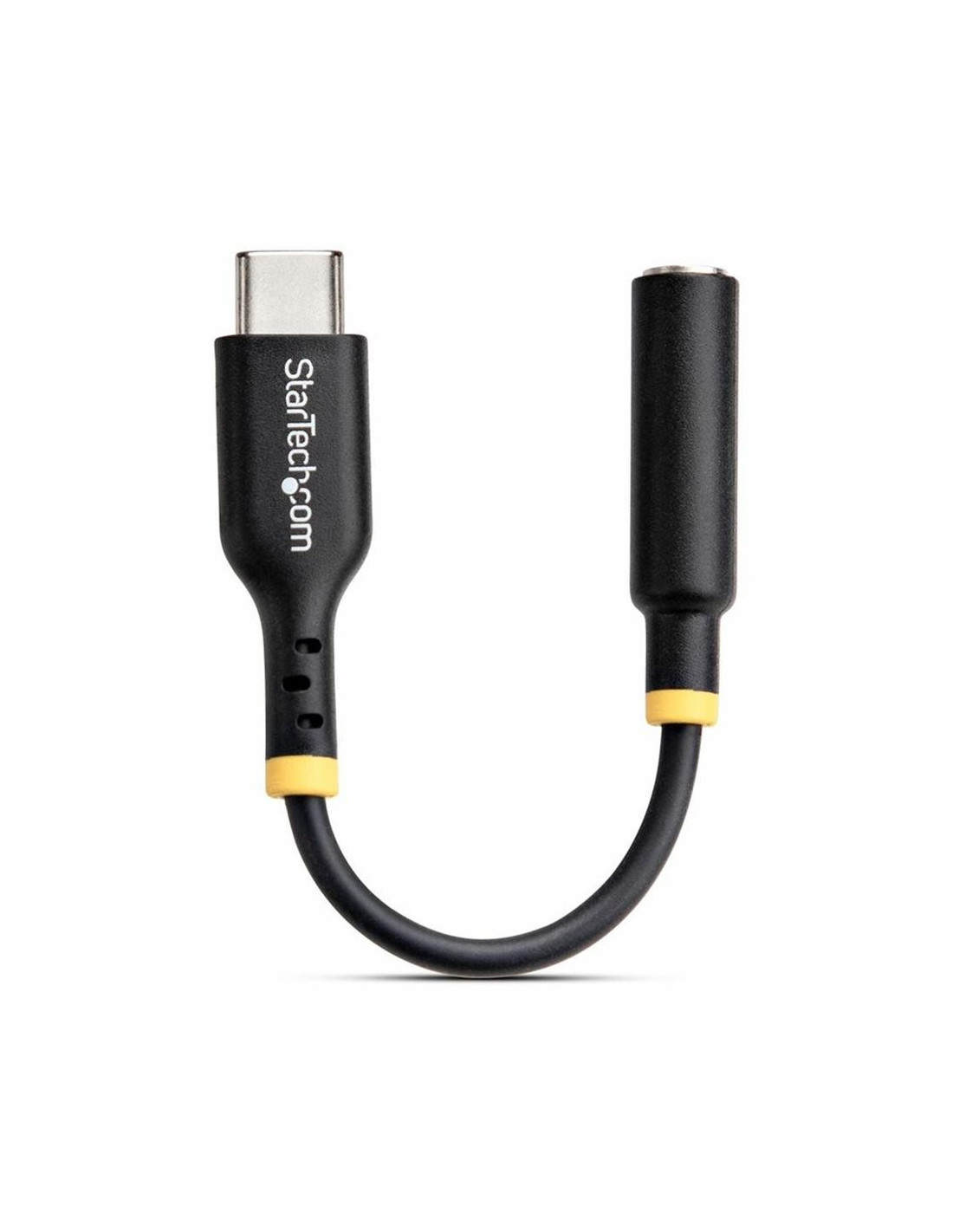 El adaptador de audio USB-C a jack de 3,5 mm de StarTech.com es una solución práctica y compacta para recuperar la conexión de auriculares en dispositivos modernos sin puerto auxiliar. Diseñado para smartphones, tablets y portátiles, este dongle ofrece una conversión de audio digital a analógico de alta calidad, ideal para disfrutar de tu música, llamadas o contenido multimedia con total claridad.