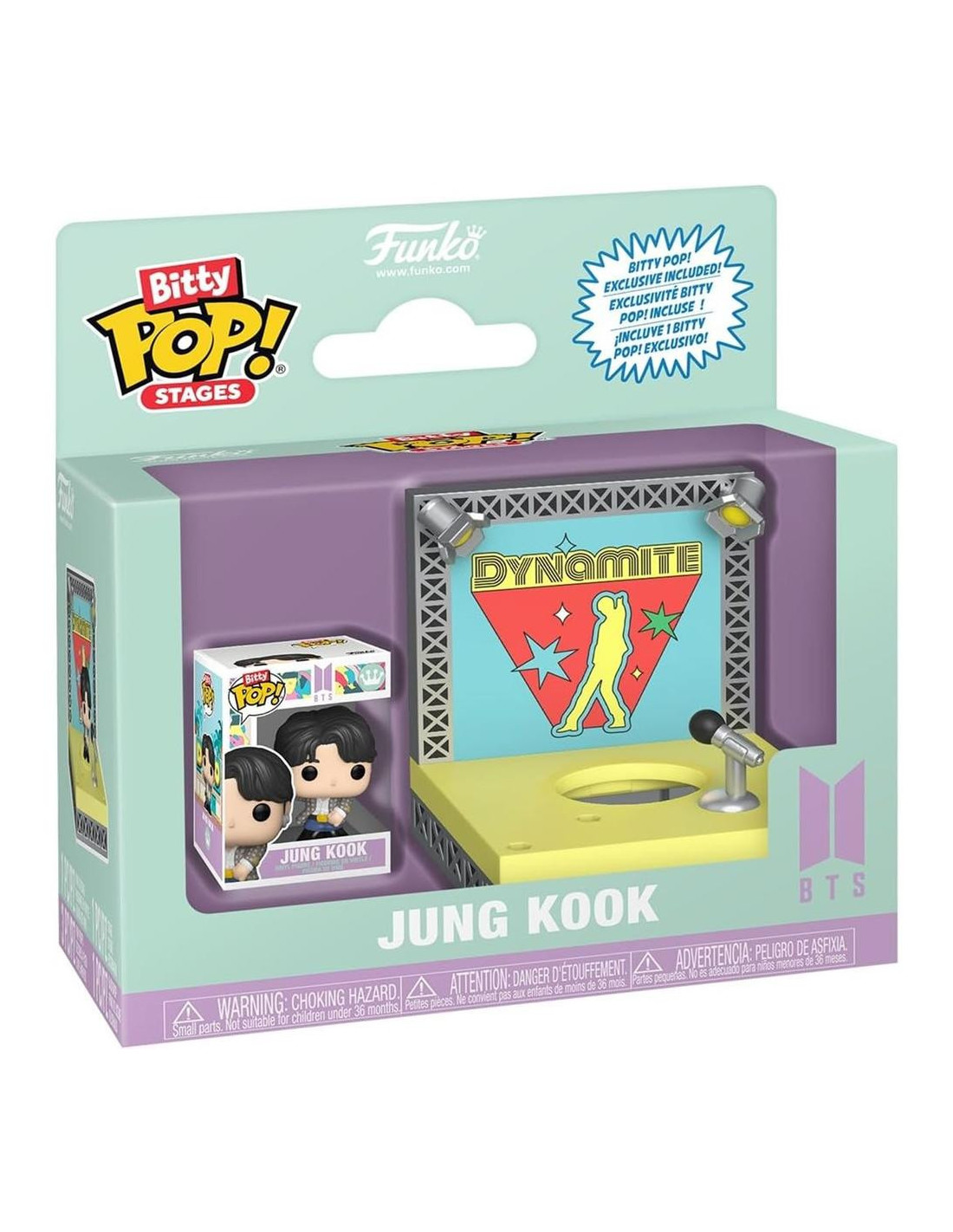 La Bitty Stages: BTS - Dynamite - Jung Kook es una figura coleccionable oficial de Funko que recrea una de las escenas más icónicas del éxito mundial "Dynamite" de BTS. Este set combina una mini figura Bitty Pop! con un escenario temático inspirado en el videoclip, ofreciendo una pieza compacta, detallada y perfecta para fans del K-Pop y coleccionistas de merchandising oficial.