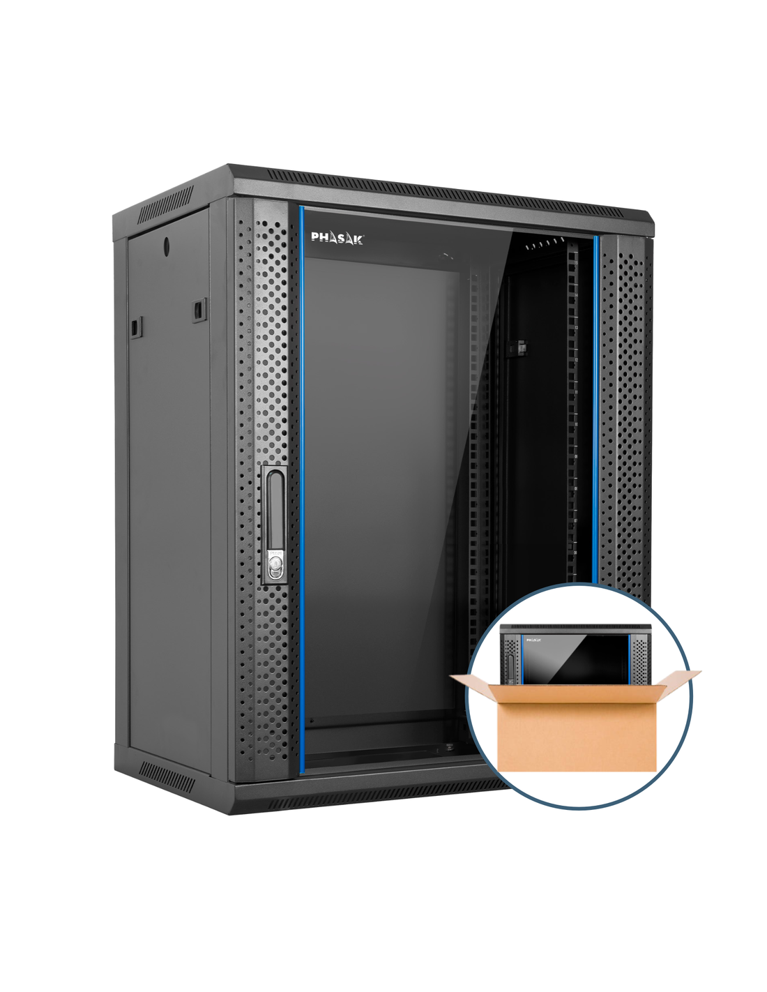 El armario rack mural PHASAK Pro 19" de 15U es una solución profesional diseñada para alojar equipos de red, routers, switches, DVR y otros dispositivos en entornos técnicos y empresariales. Fabricado en acero laminado en frío SPCC de 1,2 mm, ofrece una estructura robusta, segura y con un acabado en color negro RAL 9004 que encaja perfectamente en oficinas, salas técnicas o instalaciones profesionales. Además, se suministra pre-montado, listo para instalar y comenzar a trabajar sin complicaciones.