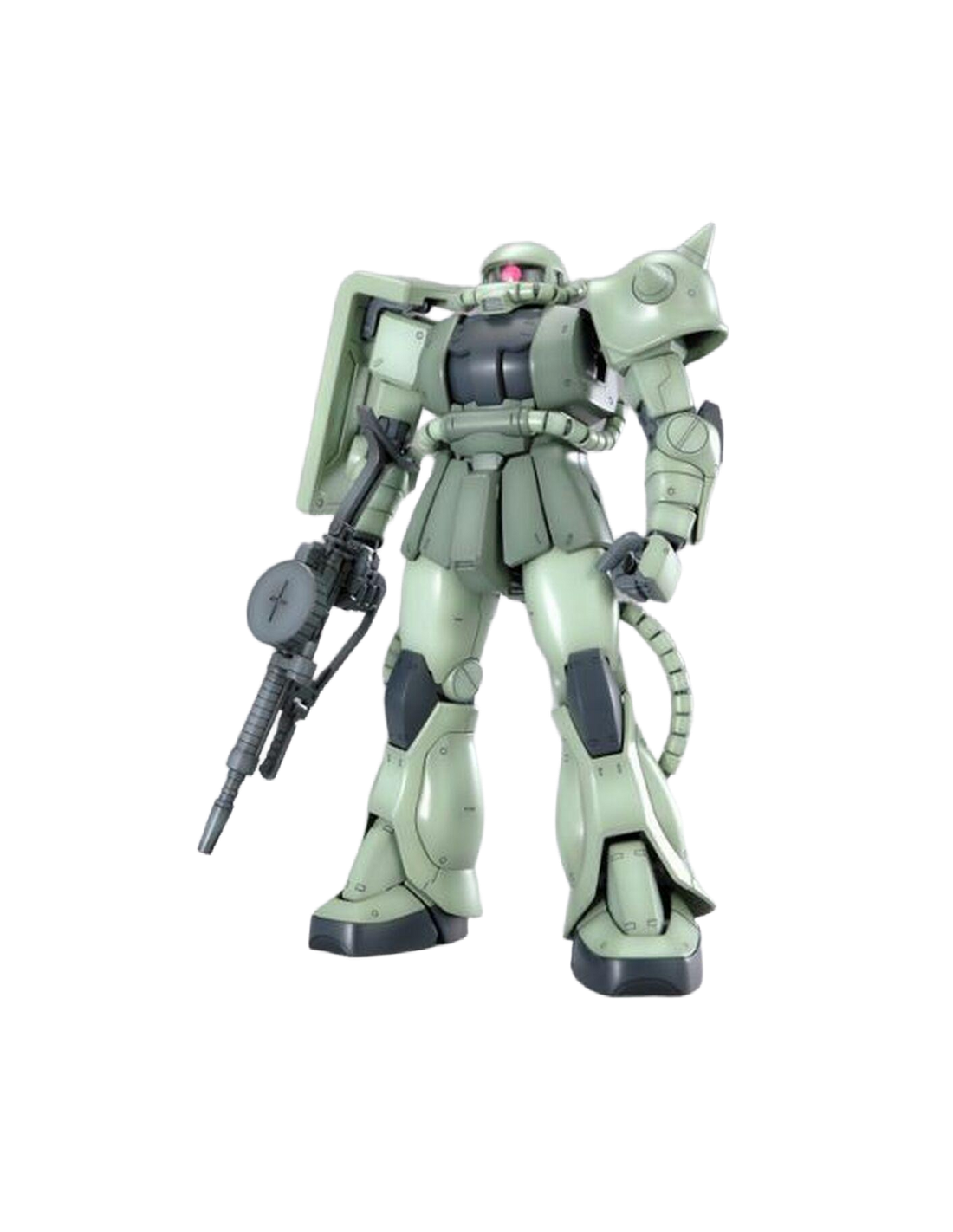 La serie Master Grade (MG) se caracteriza por ofrecer modelos con gran precisión en las proporciones y un sistema interno que mejora la estabilidad y la movilidad. El Zaku II Ver. 2.0 incorpora una estructura interna avanzada que permite poses naturales y una apariencia más realista una vez montado.