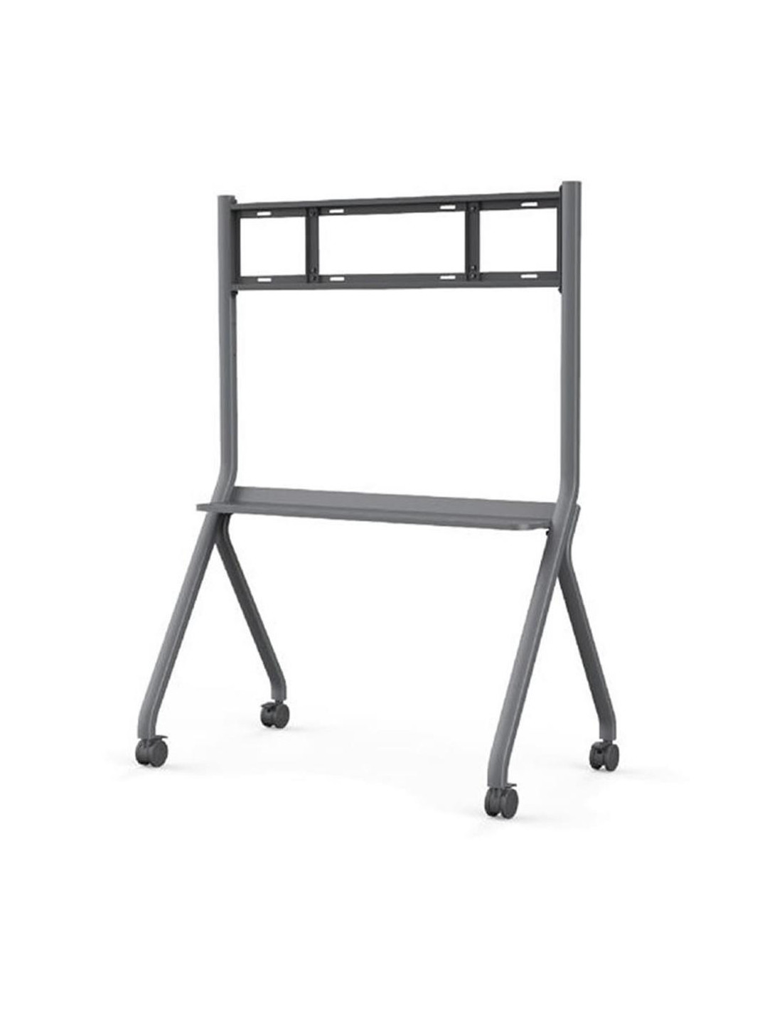 Gracias a su estructura resistente y a sus cuatro ruedas con sistema de bloqueo, este soporte ofrece un desplazamiento cómodo y una fijación estable una vez colocado en la posición deseada. Soporta hasta 100 kg de peso, lo que lo convierte en una opción fiable para pantallas profesionales de gran tamaño.