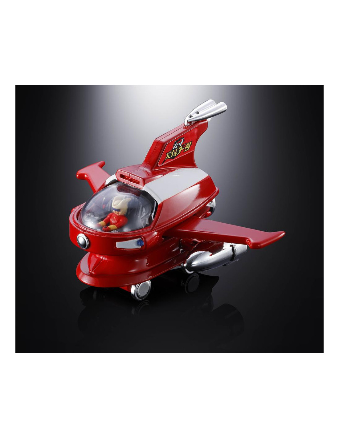 El modelo reproduce el característico Jet Pilder con alas laterales y cabina frontal, manteniendo la apariencia clásica del vehículo que se utiliza para activar y pilotar a Mazinger Z. Su acabado brillante y sus detalles cromados aportan un aspecto visual atractivo y reconocible para los fans de la serie.