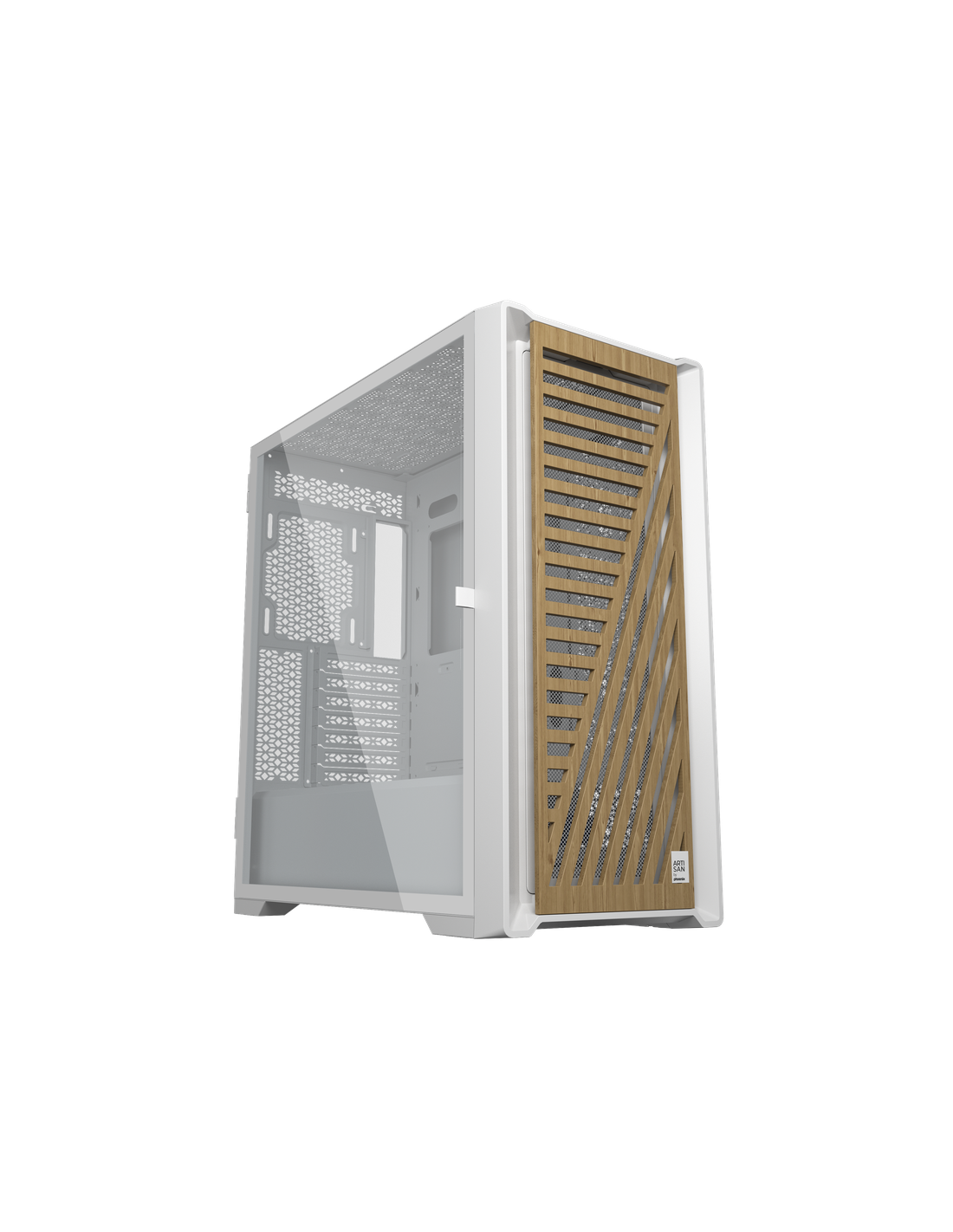 Caja ordenador phoenix gaming artisan noble blanca frontal de madera atx filtros antipolvo tipo c