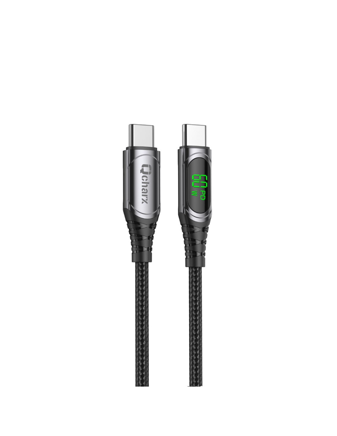 Cable qcharx ibiza tipo c a tipo c 3a 60w - 1 m - aleación aluminio negro cable suave digital display