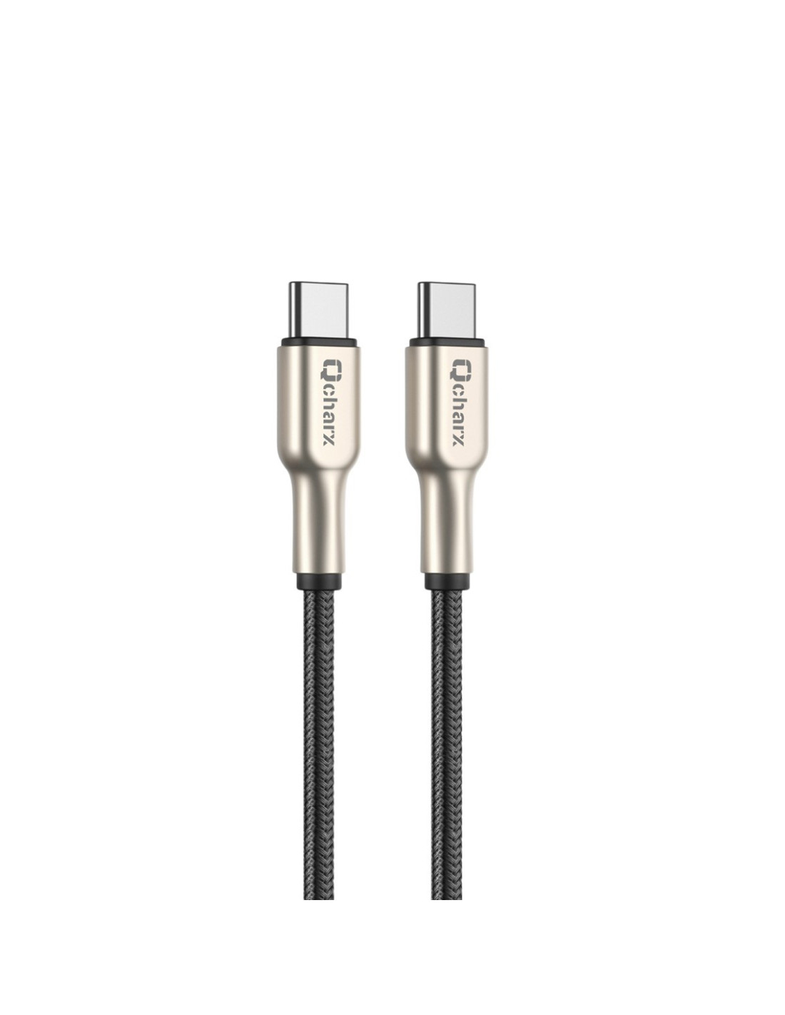 Cable qcharx new york tipo c a tipo c 3a 20w - 1 m - zinc metálico cordón plateado blindado