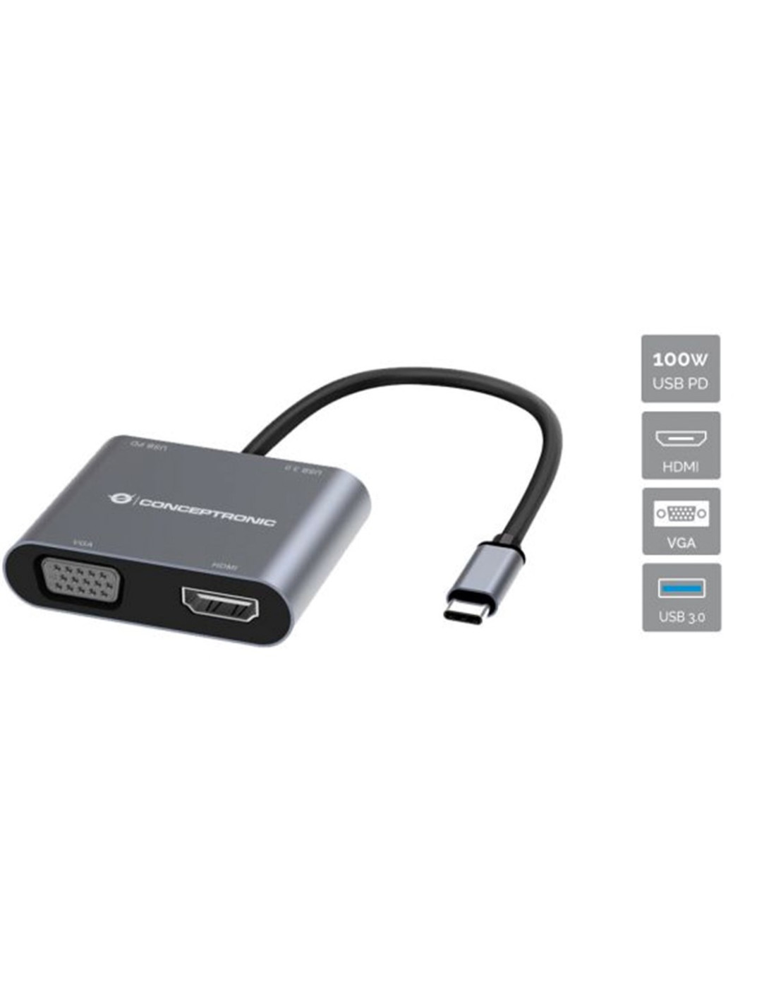 Hub usb tipo c conceptronic donn16g 1 x hdmi - 1 x vga - 1 x usb tipo c - 1 x usb 3.0