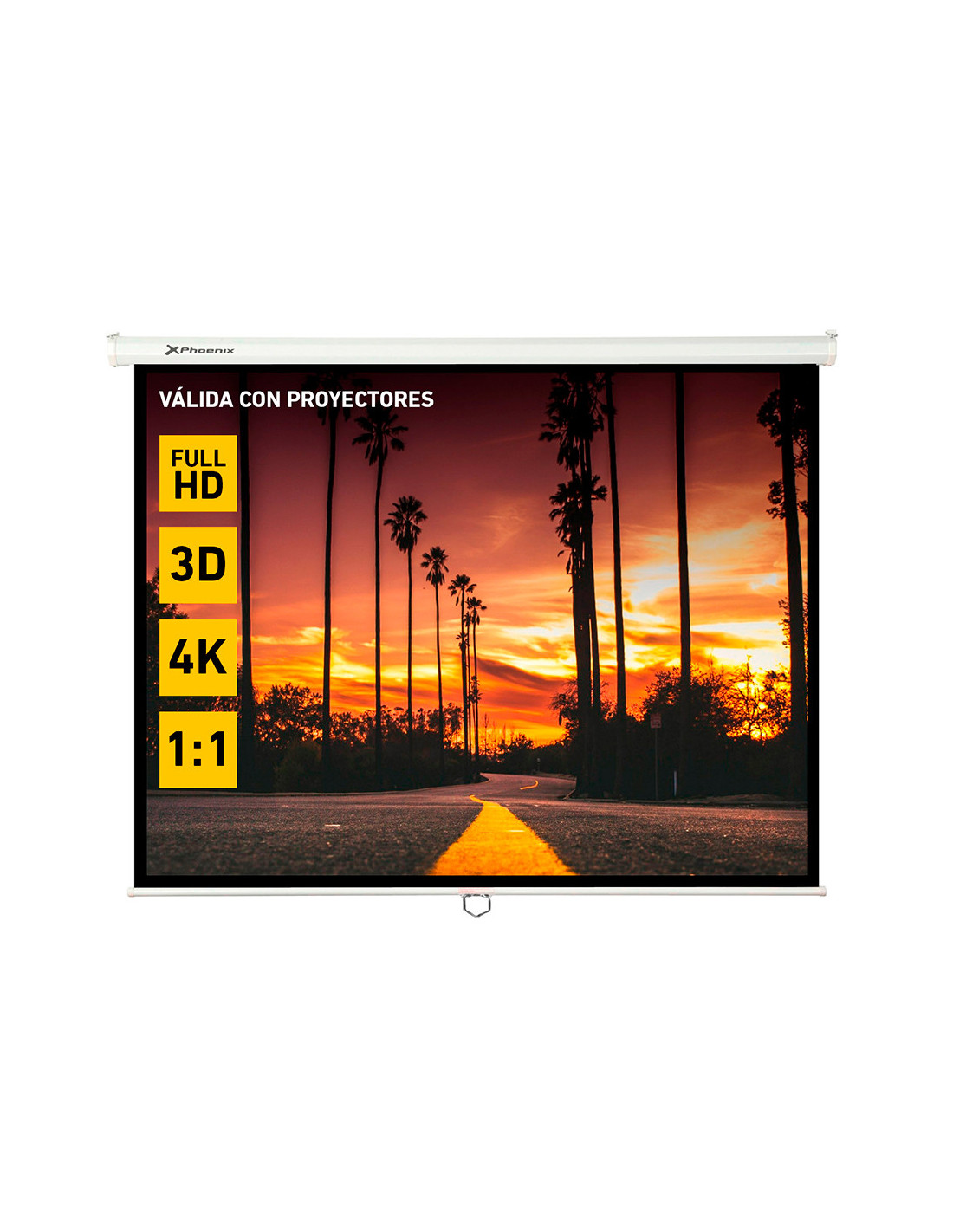 Características principales: Incluye cordón con anilla para desplegar y retraer la pantalla. Adapta tu pantalla a diferentes formatos de proyección. El diseño de la caja permite instalar la pantalla en el techo o en la pared.