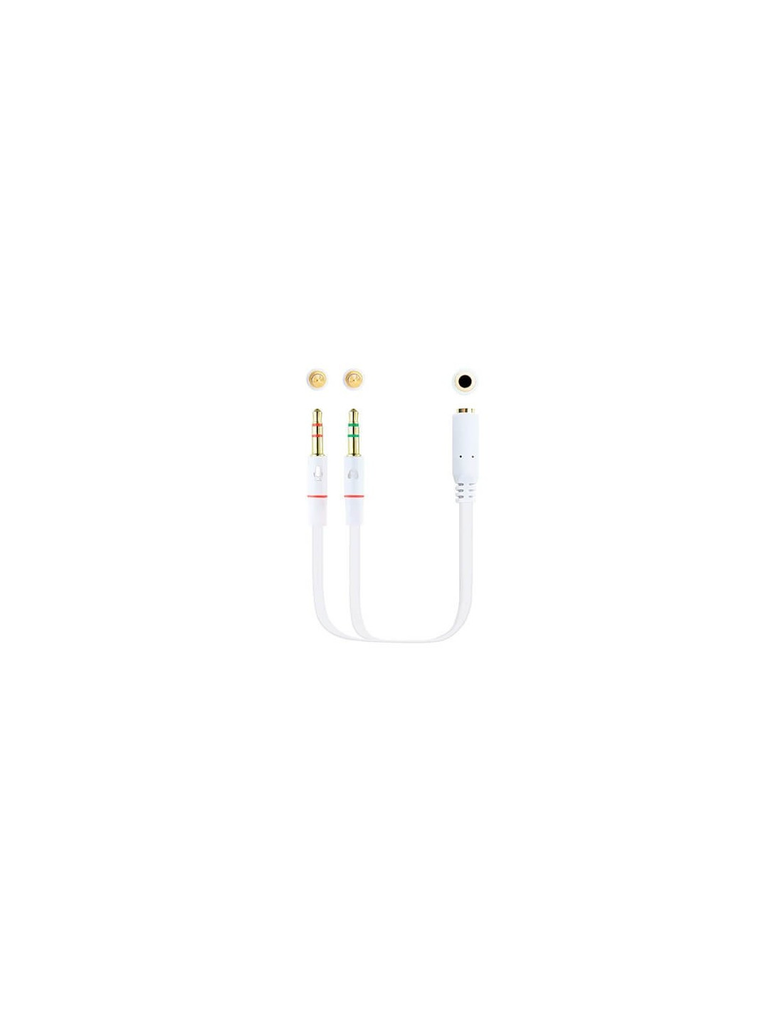 Cable audio 1xjack - 3.5 a 2xjack - 3.5 nanocable 20cm blanco - hembra a 2xmacho - 4pin - 3pin - blanco