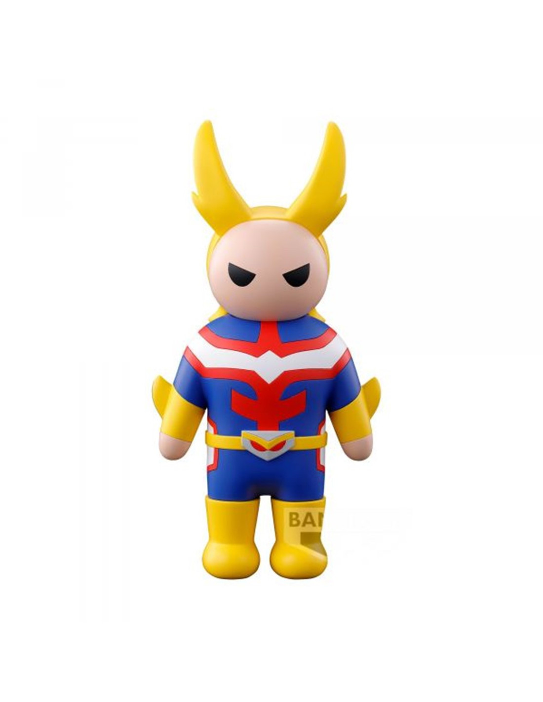 Banpresto presenta la figura de All Might del popular manga y anime My Hero Academia Sofvimates. Esta figura está hecha en PVC mide unos 12 cm de alto e incluye una base soporte especial para