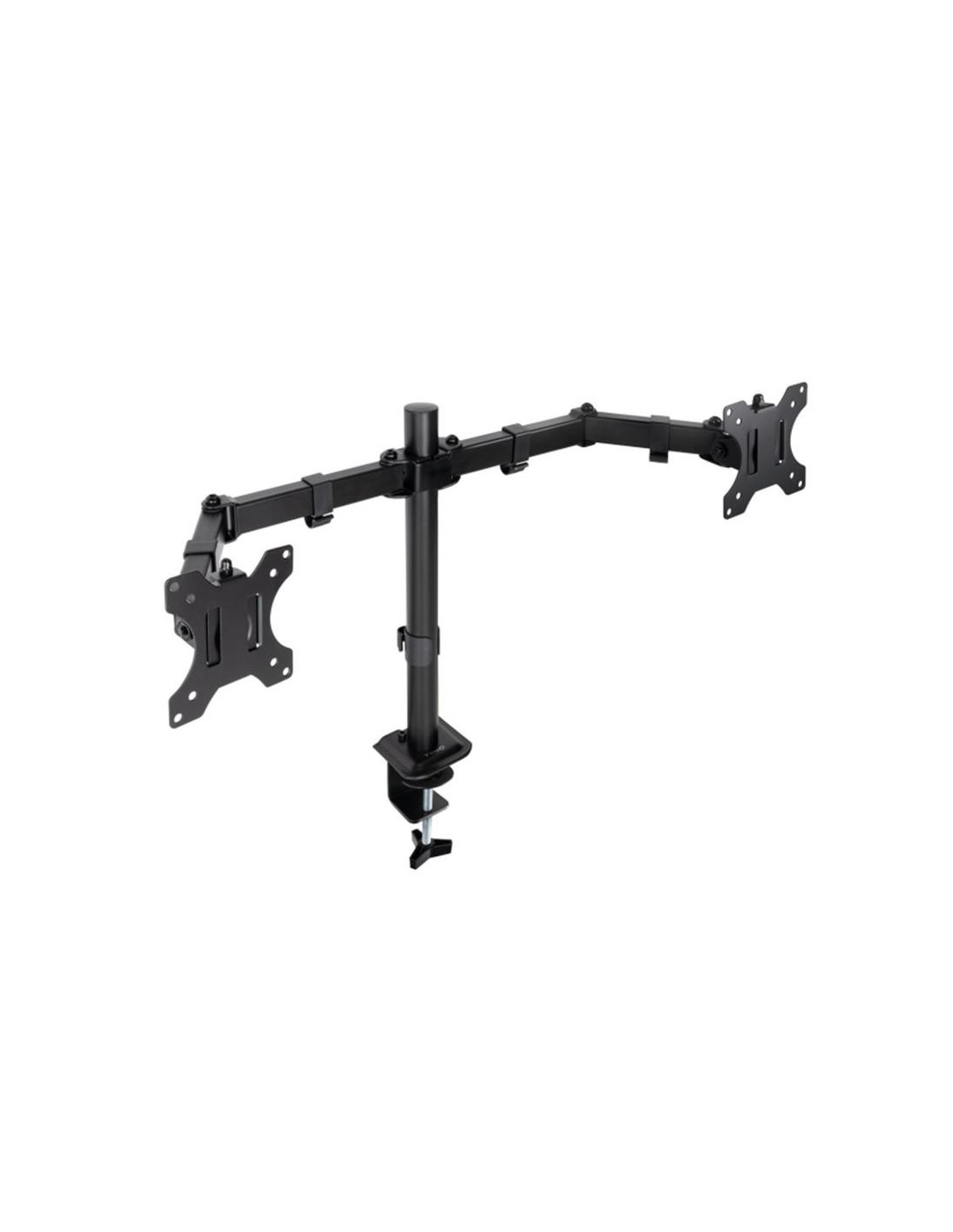 TooQ Soporte de Mesa para 2 Pantallas 17"-27", Negro. Montaje: Abrazadera/Atornillado, Capacidad máxima de peso: 16 kg, Tamaño mínimo de pantalla: 43,2 cm (17"), Tamaño máximo de pantalla: 68,6 cm