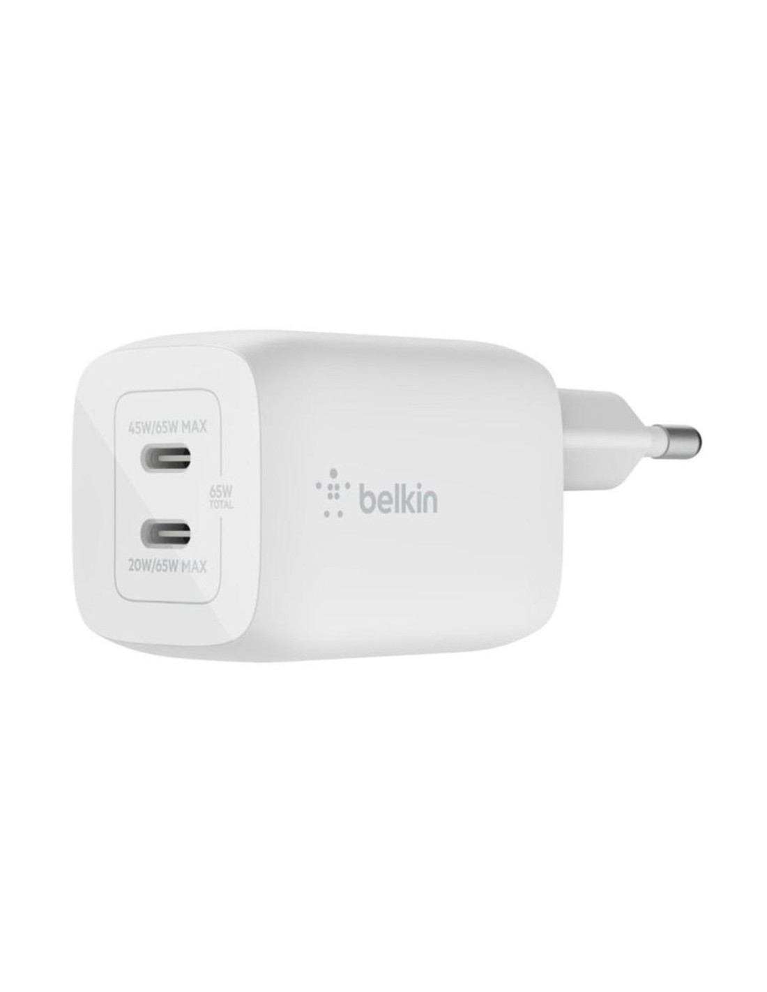 El Belkin WCH013vfWH es un cargador compacto y potente diseñado para cubrir las necesidades de portátiles, smartphones y tabletas. Gracias a la tecnología GaN (nitruro de galio), ofrece una carga más eficiente y segura en un diseño más pequeño y ligero. Con sus 2 puertos USB-C y una potencia máxima de 65 W, es ideal para quienes buscan velocidad y versatilidad en un solo dispositivo.