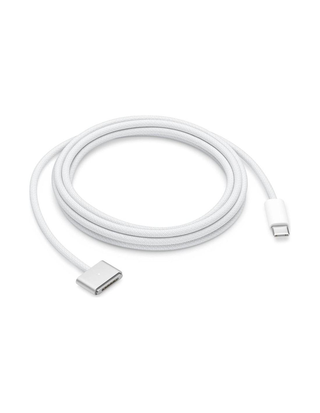 El **cable de alimentación Apple USB-C a MagSafe 3** de 2 metros está diseñado para ofrecer una conexión de carga rápida, segura y eficiente entre tu MacBook con puerto USB-C y un adaptador de corriente compatible. Con su diseño tejido resistente y su conector magnético MagSafe 3, este cable no solo garantiza durabilidad, sino también una conexión fácil y segura que se desconecta si alguien tropieza con él, evitando daños accidentales.