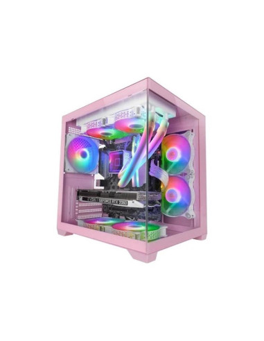 La Mars Gaming MCVIEW2P es una caja compacta tipo Cube que combina un diseño panorámico premium con un formato funcional ideal para setups gaming o personalizados. Su elegante acabado en color rosa, junto con paneles de cristal templado continuo sin marcos, permite exhibir tu configuración interna con total visibilidad. Es perfecta para quienes buscan potencia, estética y modularidad en un formato reducido.