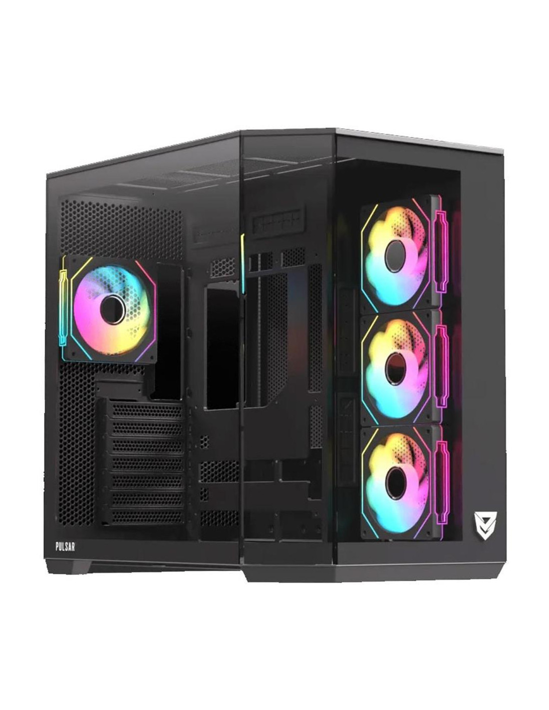 Gracias a su diseño interno y backrouting eficiente, la Pulsar ofrece una excelente circulación del aire. Soporta hasta 10 ventiladores de 120 mm y refrigeración líquida tanto lateral como superior, con radiadores de 240 o 360 mm. Ideal para mantener las temperaturas a raya incluso en sesiones gaming intensas.