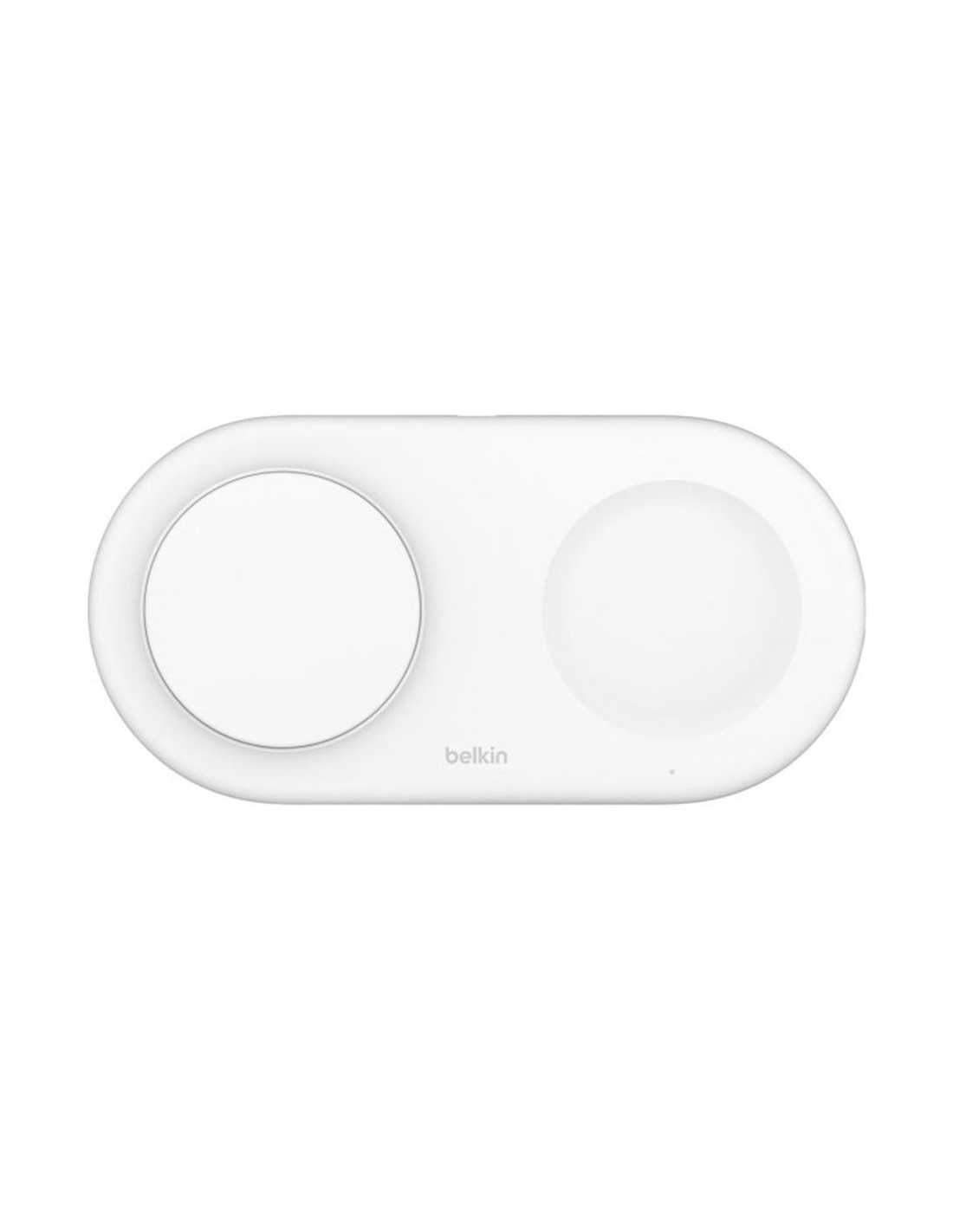 La base de carga inalámbrica doble Belkin WIZ021vfWH está diseñada para ofrecer una carga rápida, segura y sin cables a dos dispositivos de forma simultánea. Su diseño en color blanco, fabricado en plástico resistente, se integra perfectamente en escritorios, mesillas o espacios de trabajo, garantizando comodidad y eficiencia en la recarga diaria.